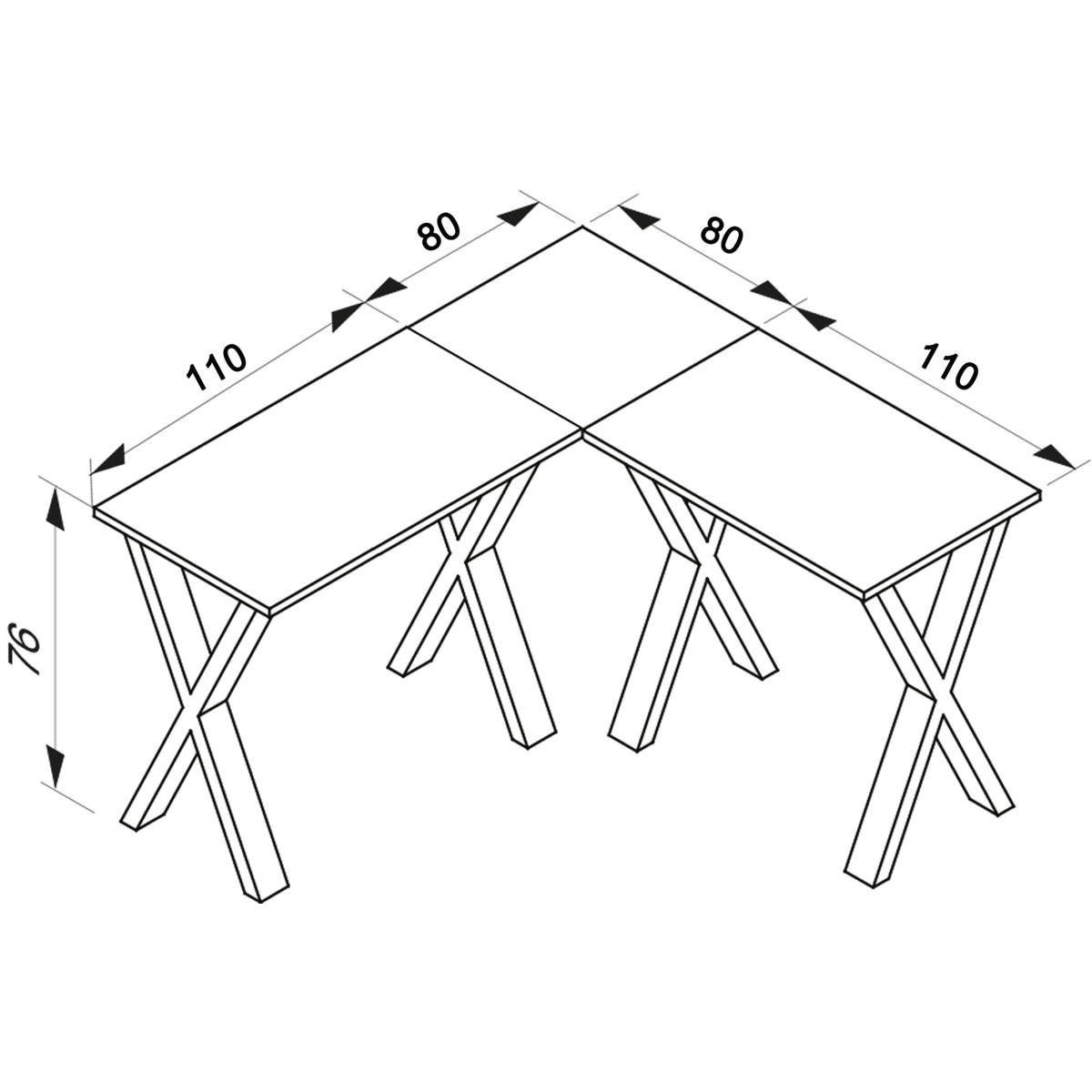 Rohový stůl Lona 190x190x80 X-nohy, dub medový
