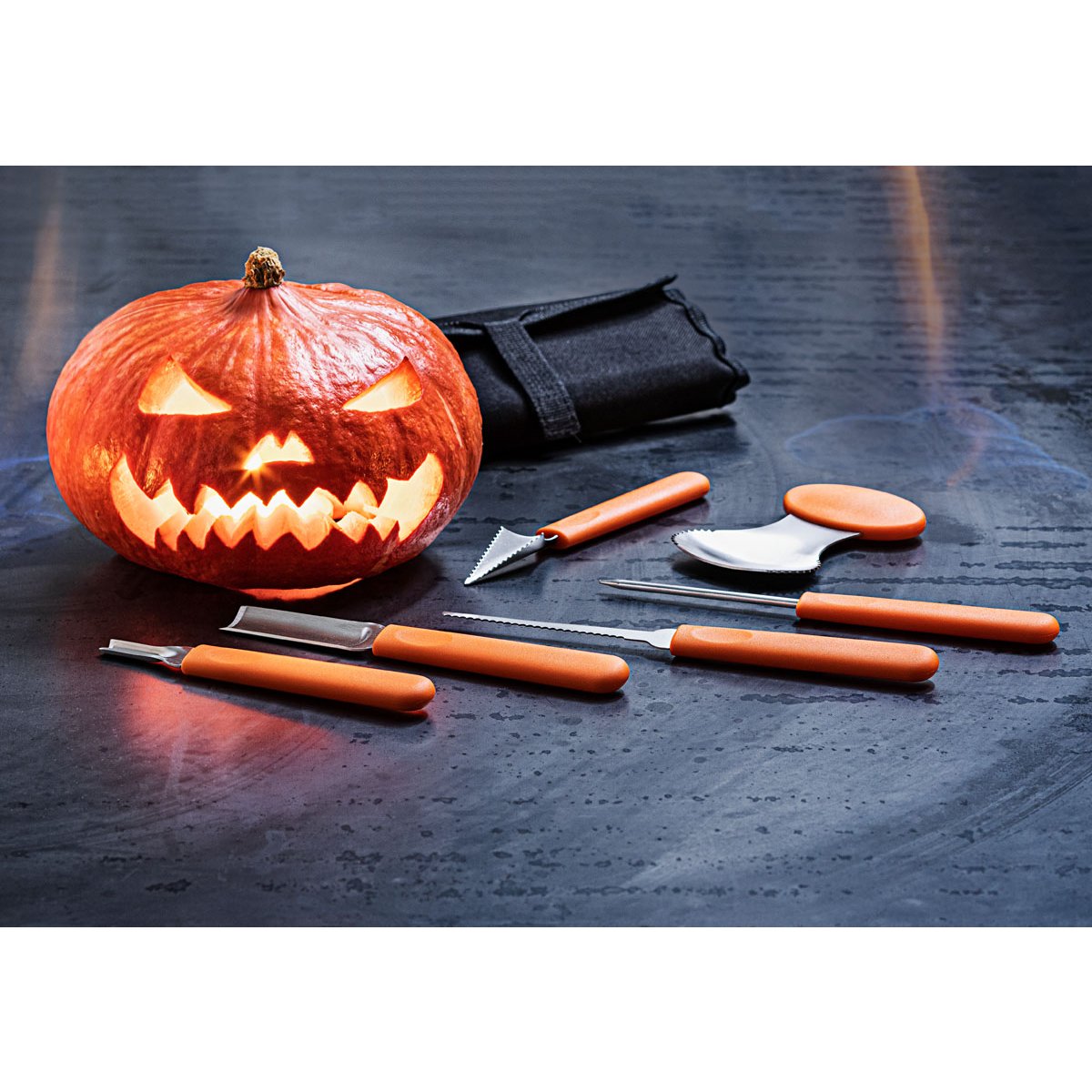 Najdete zde vše, co potřebujete k vyřezávání dýní a jejich dekorativnímu zdobení. Pak už stačí jen vložit nejlépe LED svíčku a hrdě ji prezentovat - před vchodovými dveřmi, na zahradě nebo na balkoně. Pokud používáte tradiční svíčku, nechte ji hořet pouze pod dohledem. Se svíčkou LED je zaručena větší bezpečnost.