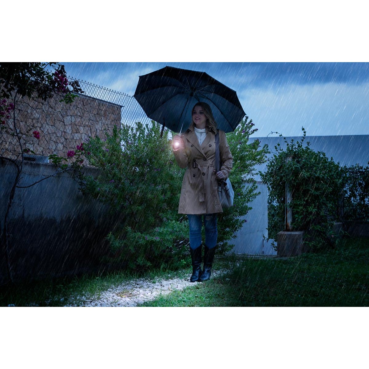 Je ideální pro snadné nastupování do auta a vystupování z něj, aniž byste se za deštivých dnů namočili, protože se zavírá opačně než běžné deštníky. Reflexní pruh a světlo LED také zlepšují viditelnost za deštivých dnů se špatným osvětlením nebo v noci, čímž zvyšují bezpečnost chodců v okolí vozidel, překážek apod.