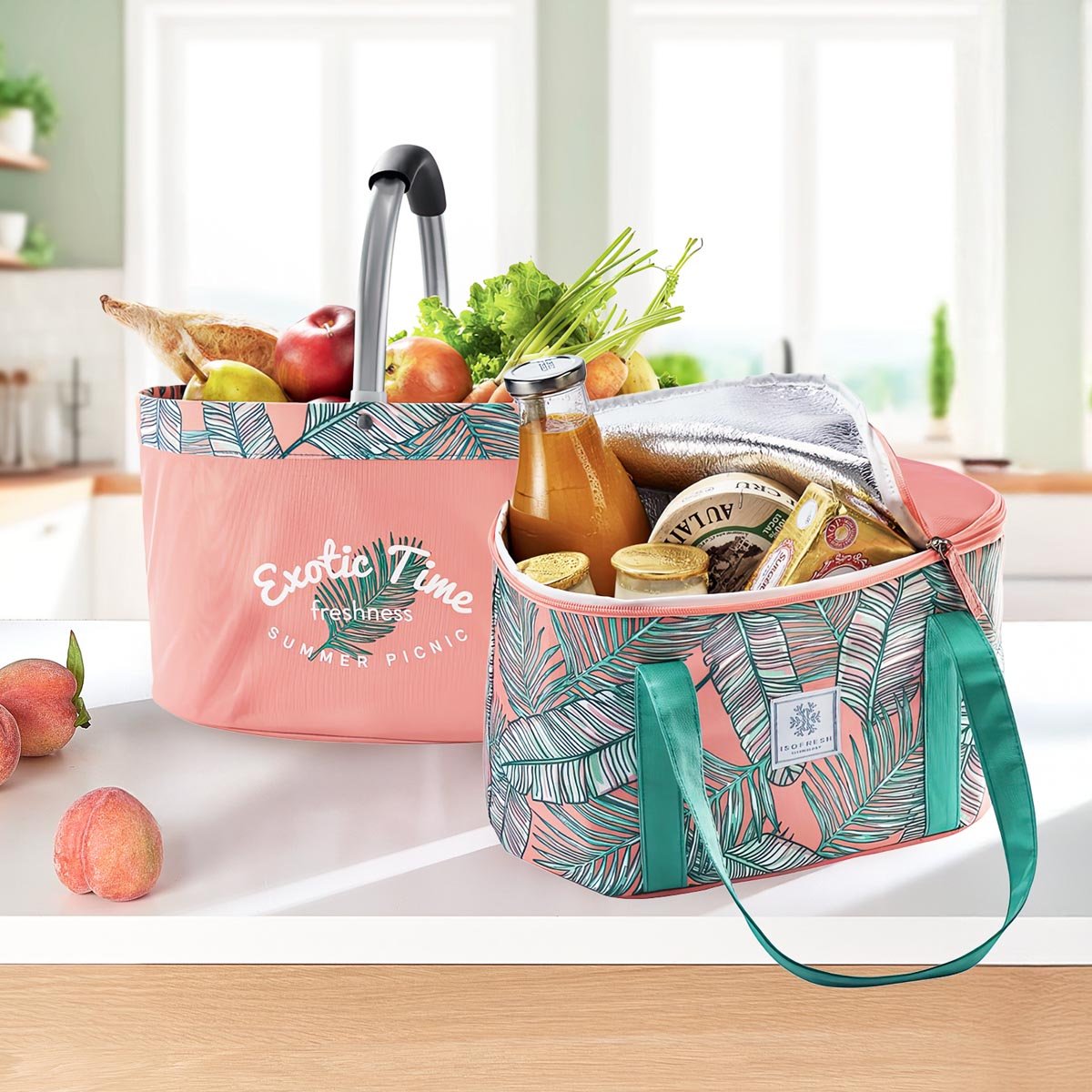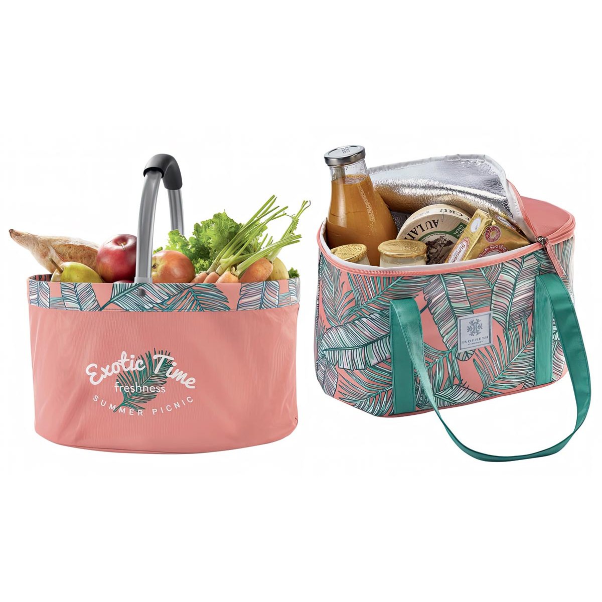 Skládací košík + chladící taška na jídlo tvoří praktickou dvojici, kterou oceníte při každodenních nákupech i víkendových výletech. Košík je vybaven hliníkovou rukojetí s měkkým pěnovým úchytem, lze ho snadno složit naplocho a šetří tak místo při ukládání.