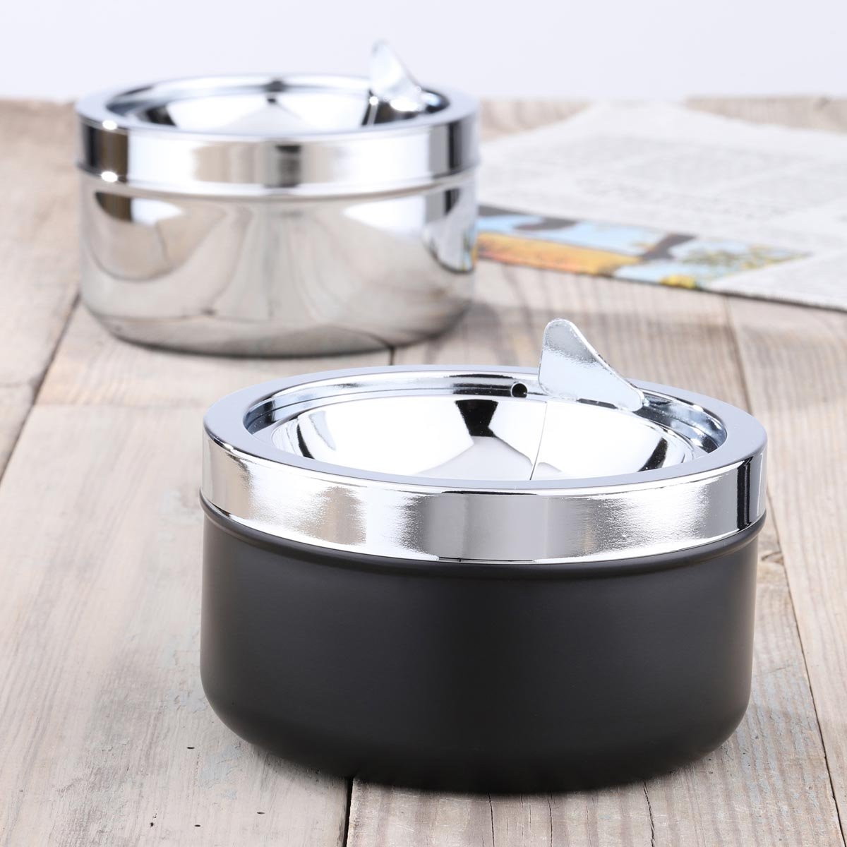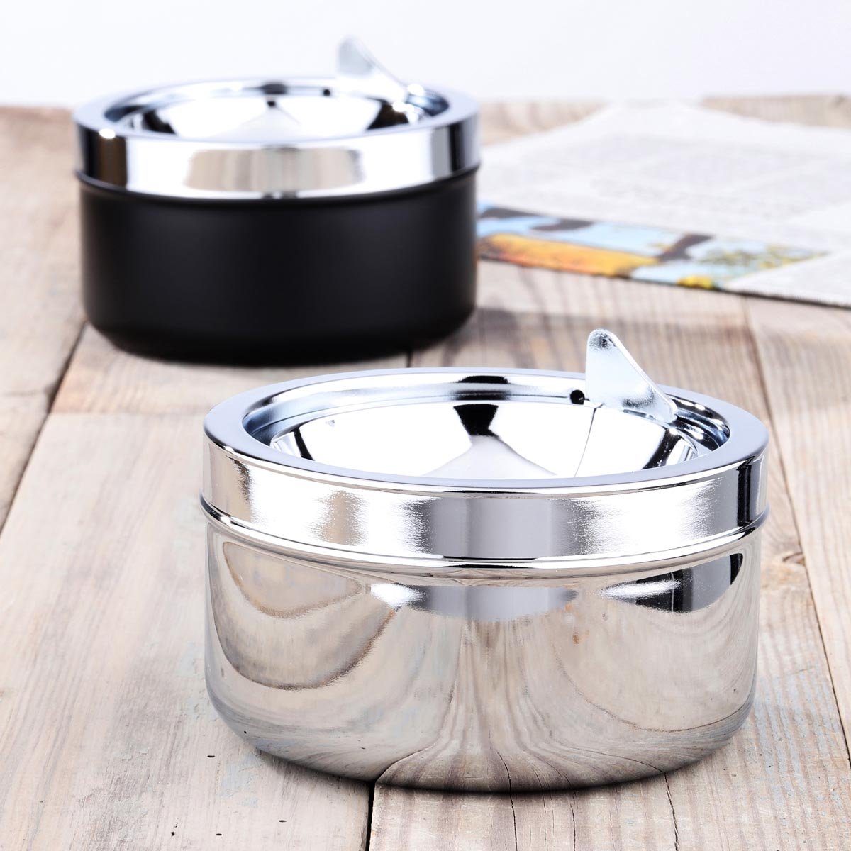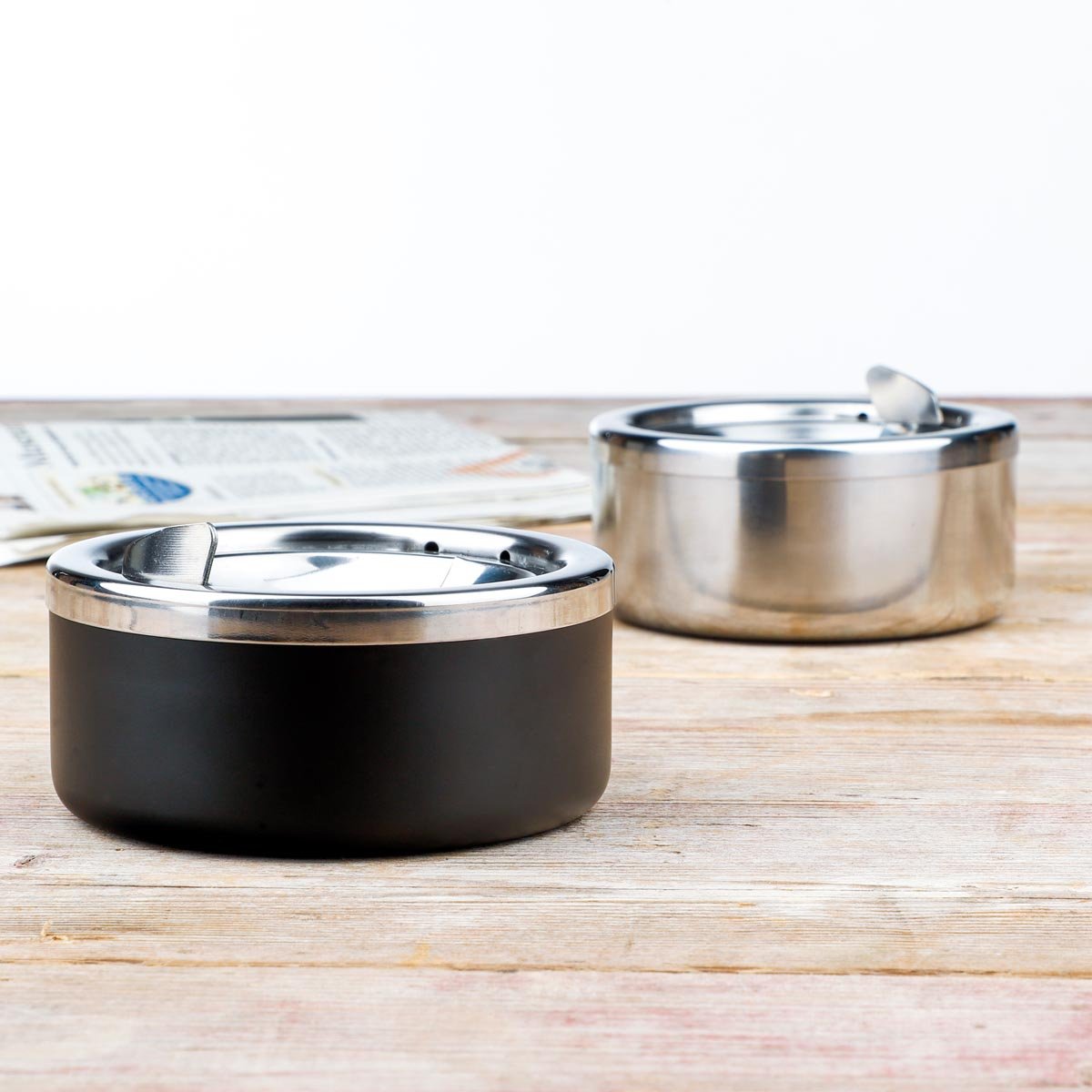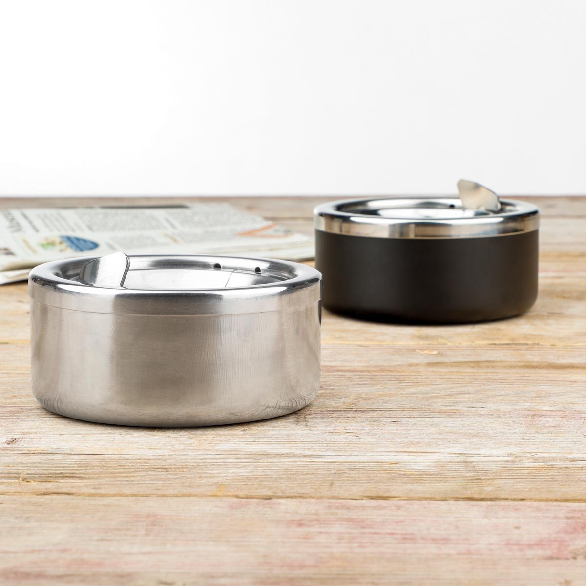 Elegantní nerezový popelník s víkem udrží okolní prostor čistý, bez popelu.