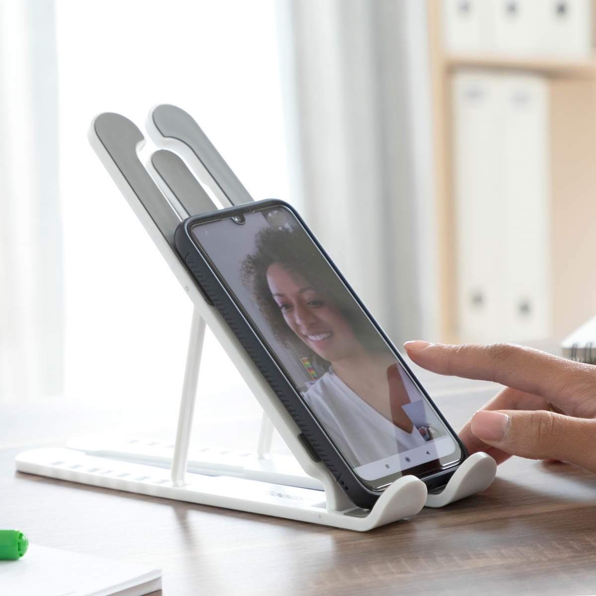 Všestranný a přizpůsobivý skládací stojan na notebook s protiskluzovou opěrnou plochou. Poskytuje pevnou oporu a jeho otevřená konstrukce umožňuje odvádět teplo, čímž zabraňuje přehřátí zařízení. Má 8 úrovní náklonu (20-45º) a je vhodný i pro další zařízení (od 10" do 17").