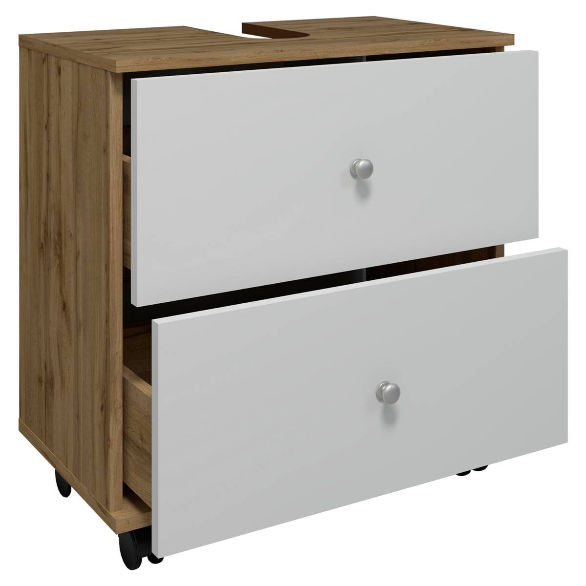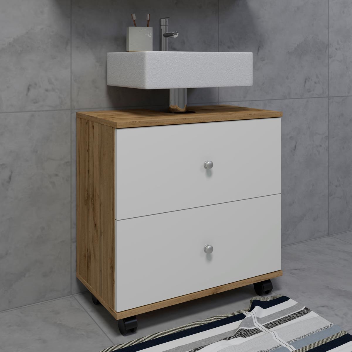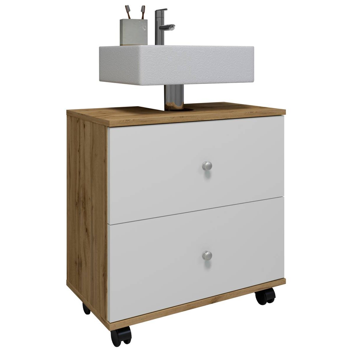 Hlavní vlastnosti: - Dvě velké zásuvky - Moderní design - Kvalitní a stabilní zpracování - Čtyři hladce se pohybující kolečka - Rozměry cca v. 61 x š. 60 x h. 33 cm Umyvadlová skříňka VCM "Nilosi L" se díky svému modernímu a zároveň nadčasovému designu hodí téměř do každé koupelny. Dvě zásuvky poskytují dostatek prostoru pro koupelnové potřeby. Čtyři kolečka jsou nejen praktická, ale dodávají skříňce i velmi osobitý vzhled. Díky melaminovému povlaku se skříňka pod umyvadlo obzvláště snadno čistí a je odolná vůči vodě. Skříňku pod umyvadlo lze doplnit dalším koupelnovým nábytkem série "VCM Nilosi". VCM se od 70. let specializuje na design, výrobu a distribuci nábytku s férovým poměrem cena/výkon a zdobí tak již miliony domácností.Doplňkové parametry