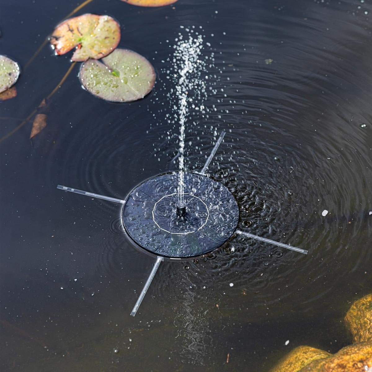 Solární fontána vám úžasně zpestří pobyt u zahradního jezírka.