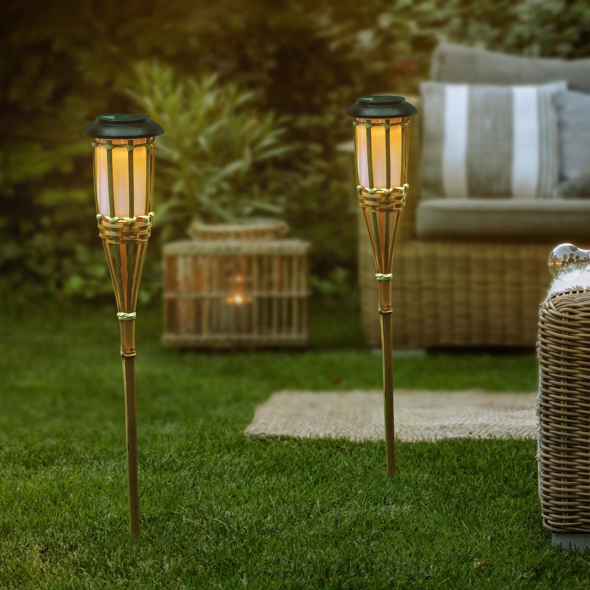 Zahradní solární pochodeň se skvěle hodí na zahradní party, osvětlení jezírka či na terasu. S integrovaným solárním panelem se přes den nabíjejí a večer se automaticky zapnou. 2 kusy.