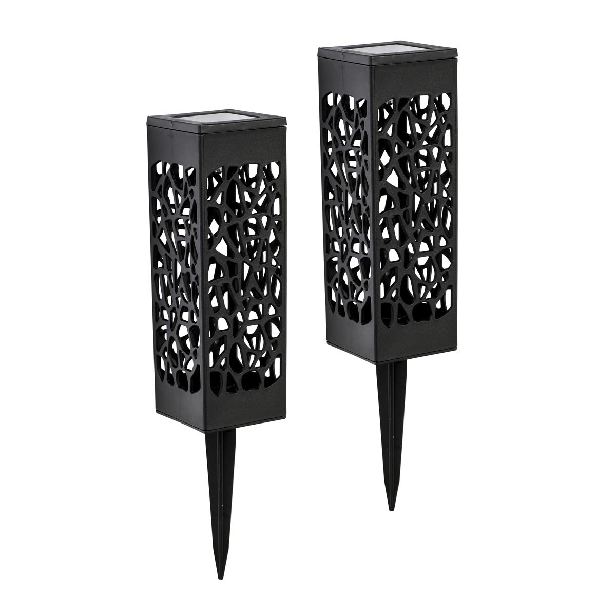 Zahradní solární lampy s integrovaným solárním panelem se přes den nabíjejí a večer se automaticky zapnou. Díky prolamovanému stínidlu vytváří efektní stínové osvětlení zahrady, terasy či zdi. S vypínačem. Se zemním hrotem 10 cm. 2 kusy.