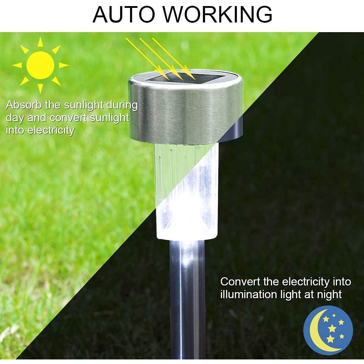 Solární venkovní světlo je krásné venkovní světlo pro dekoraci i osvětlení vaší cesty, zahrady a dvorku.Světlo je dodáváno s odolným a lehkým amorfním solárním panelem, který přeměňuje sluneční světlo na elektřinu a udržuje baterii nabitou. Protože nepotřebují žádnou elektřinu, můžete tato světla na cestu umístit, kam uznáte za vhodné. Díky integrovanému hrotu je navíc můžete pevně umístit do země.