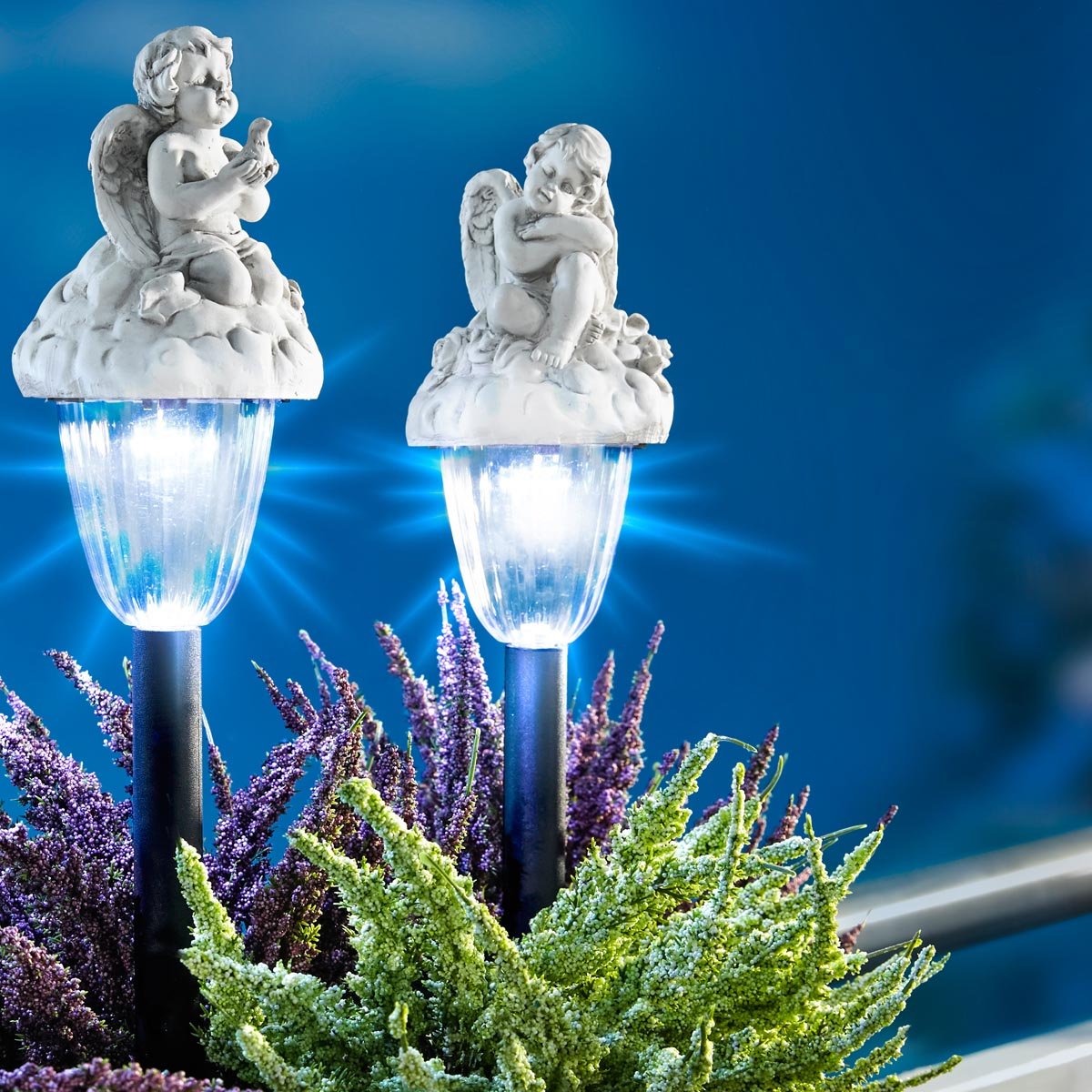 Okouzlující soška anděla posvítí na vaši cestu. Svítící anděl je vybaven solárním panelem. Přes den se nabíjí a po setmění se dekorace automaticky rozsvítí.