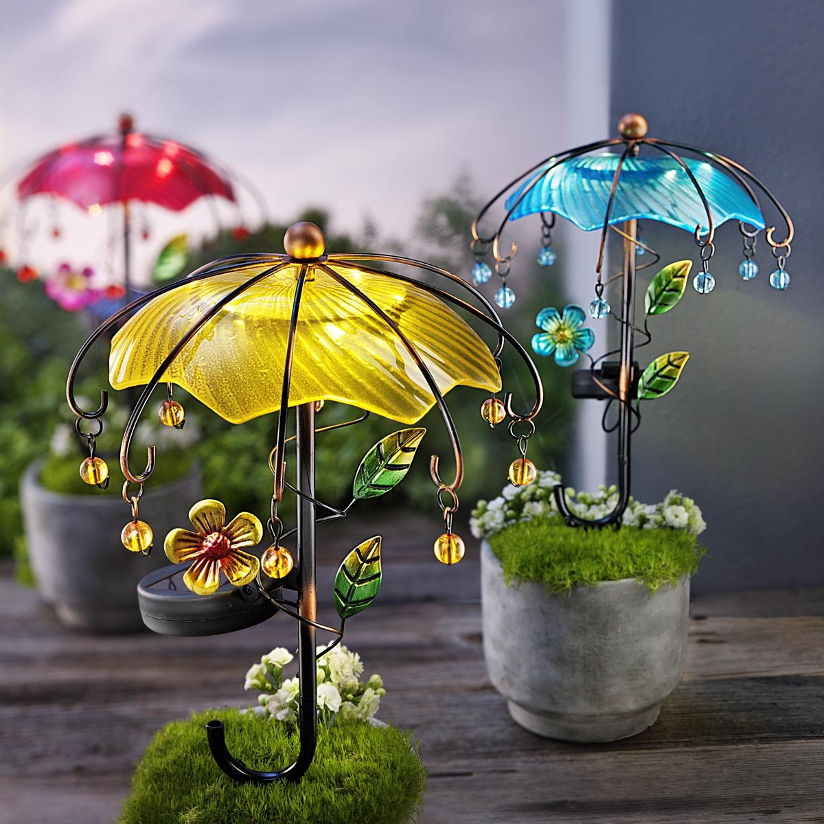 Solární zahradní zápich Deštník, sada 3 ks
