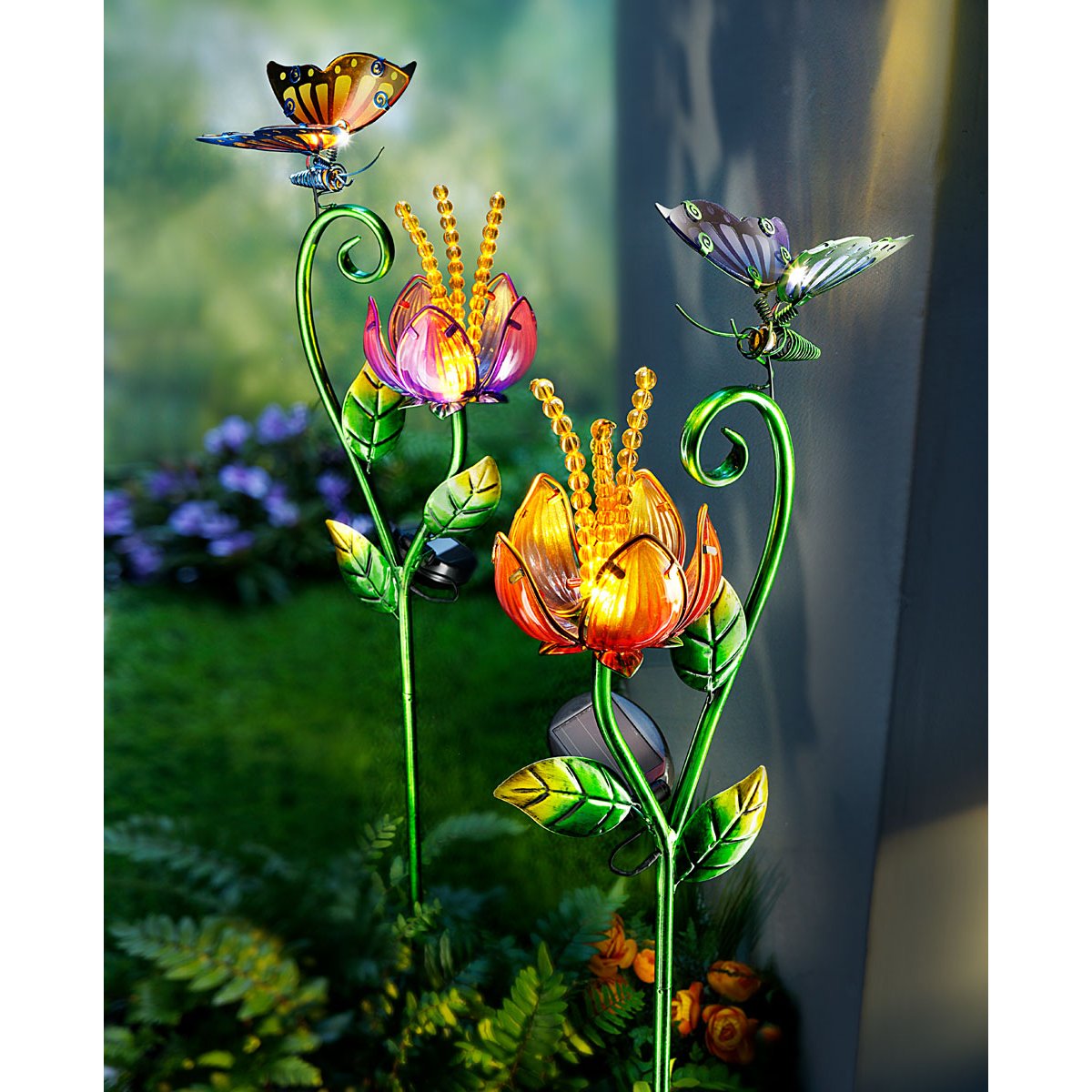 Solární zahradní zápichy můžete použít jednotlivě nebo jako kvetoucí duo. Jednoduše je zapíchněte do země: venku před domem nebo na záhoně, na louce, podél cesty, ve velkém korytu na terase nebo balkoně... Jakmile slunce zapadne, teplé bílé LED diody vytvoří scénu pro ušlechtilé skleněné květy.