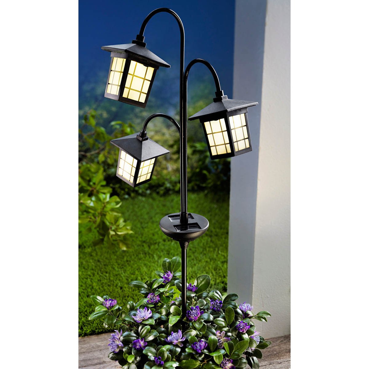 Zahradní dekorace s lucernami, které začnou po setmění svítit příjemným světlem. Integrovaný solární panel se postará o napájení LED diod a vy tak nepotřebujete žádnou zástrčku. Dekorace je hezká také přes den, neboť decentní černé lucerny dokonale zapadnou do jakéhokoliv venkovního prostředí. Jednoduše zapíchněte do záhonu, trávníku nebo květináče na balkóně.