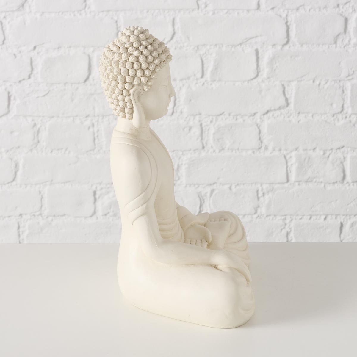 Tato stylová soška do interiéru je ideální do obývacího pokoje, ložnice nebo meditačního koutku, kde podpoří pocit pohody a rovnováhy. Skvěle se hodí na komodu, polici i konferenční stolek a doplní moderní, přírodní interiéry.