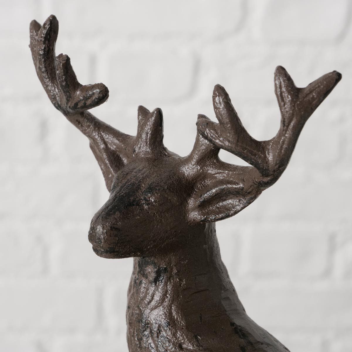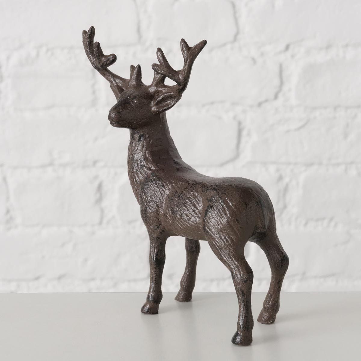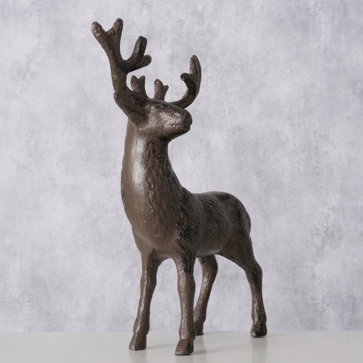 Stylová dekorativní figurka jelena z litiny vnese do interiéru rustikální kouzlo a elegantní přírodní motiv. Detailně zpracovaný jelen s majestátními parohy se skvěle hodí jako venkovská dekorace na komodu, polici, krbovou římsu nebo pracovní stůl. Robustní litinové provedení zajišťuje vysokou stabilitu, dlouhou životnost a nadčasový vzhled.