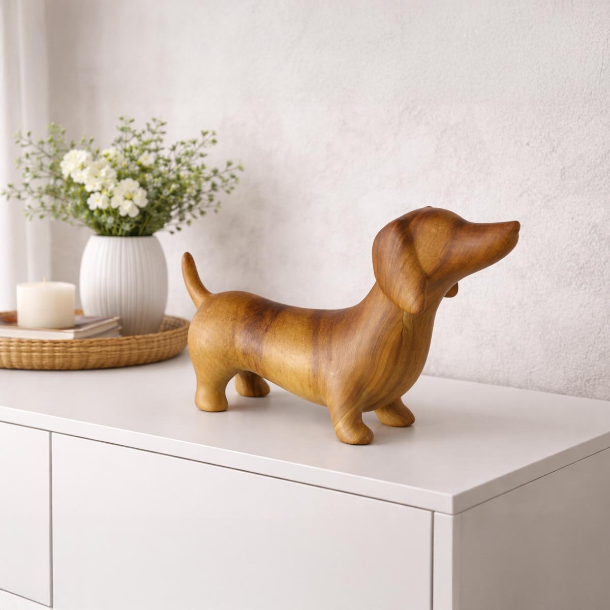 Roztomilý jezevčík v podobě keramické figurky je stylová dekorativní soška, která dodá interiéru hravý a zároveň elegantní charakter. Ruční zpracování z kvalitní kameniny a matná povrchová úprava s efektem dřeva vytvářejí přirozený a hřejivý vzhled.