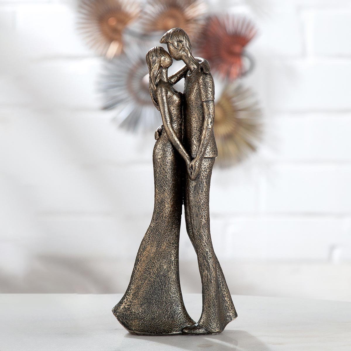 Tito dva líbající se mladí lidé vůbec nevnímají, co se kolem nich děje. Mají oči jen pro sebe. Půvabná soška představuje zhmotnělou romantickou scénu, která může zdobit například váš kancelářský stolek či poličku.