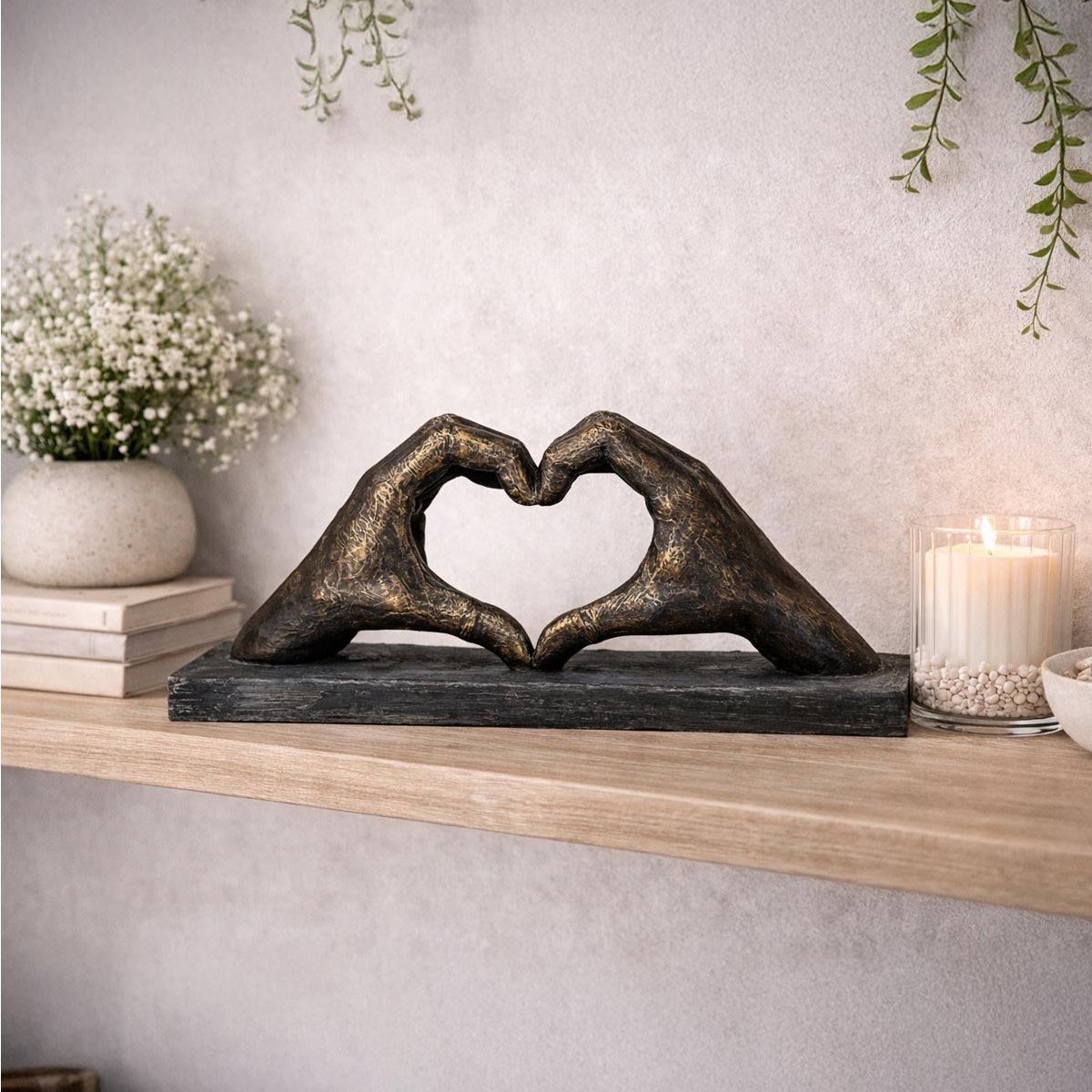Dekorativní soška srdce, vytvořená ze dvou rukou, symbolizuje lásku, štěstí a blízkost a nese silné osobní poselství. Tato stylová dekorativní soška je ideální jako dárek z lásky, poděkování nebo povzbuzení pro každého, na kom vám záleží. Díky svému nadčasovému zpracování se skvěle hodí jako elegantní soška do interiéru, která vynikne na polici, komodě i pracovním stole. Jemné linie a harmonické tvary podtrhují romantický styl a dodávají prostoru hřejivou atmosféru.