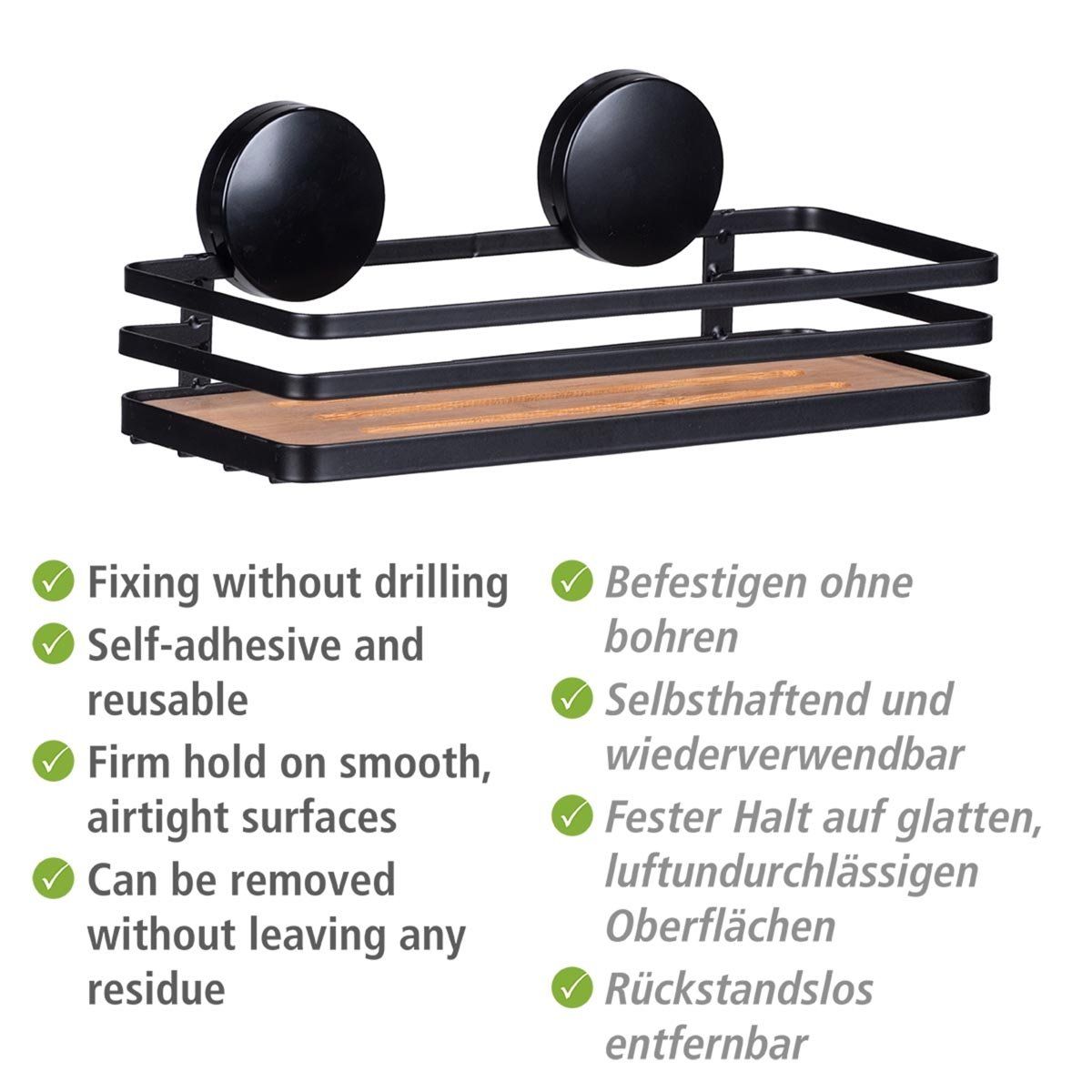 Otevřené dno umožňuje volný odtok vody a rychlé schnutí mýdel, hub i dalších doplňků, čímž pomáhá předcházet vzniku plísní. Praktická montáž bez vrtání zajišťuje snadnou instalaci bez poškození obkladů. Ideální volba pro ty, kdo hledají poličky do koupelny bez vrtání nebo funkční poličku s přísavkami.