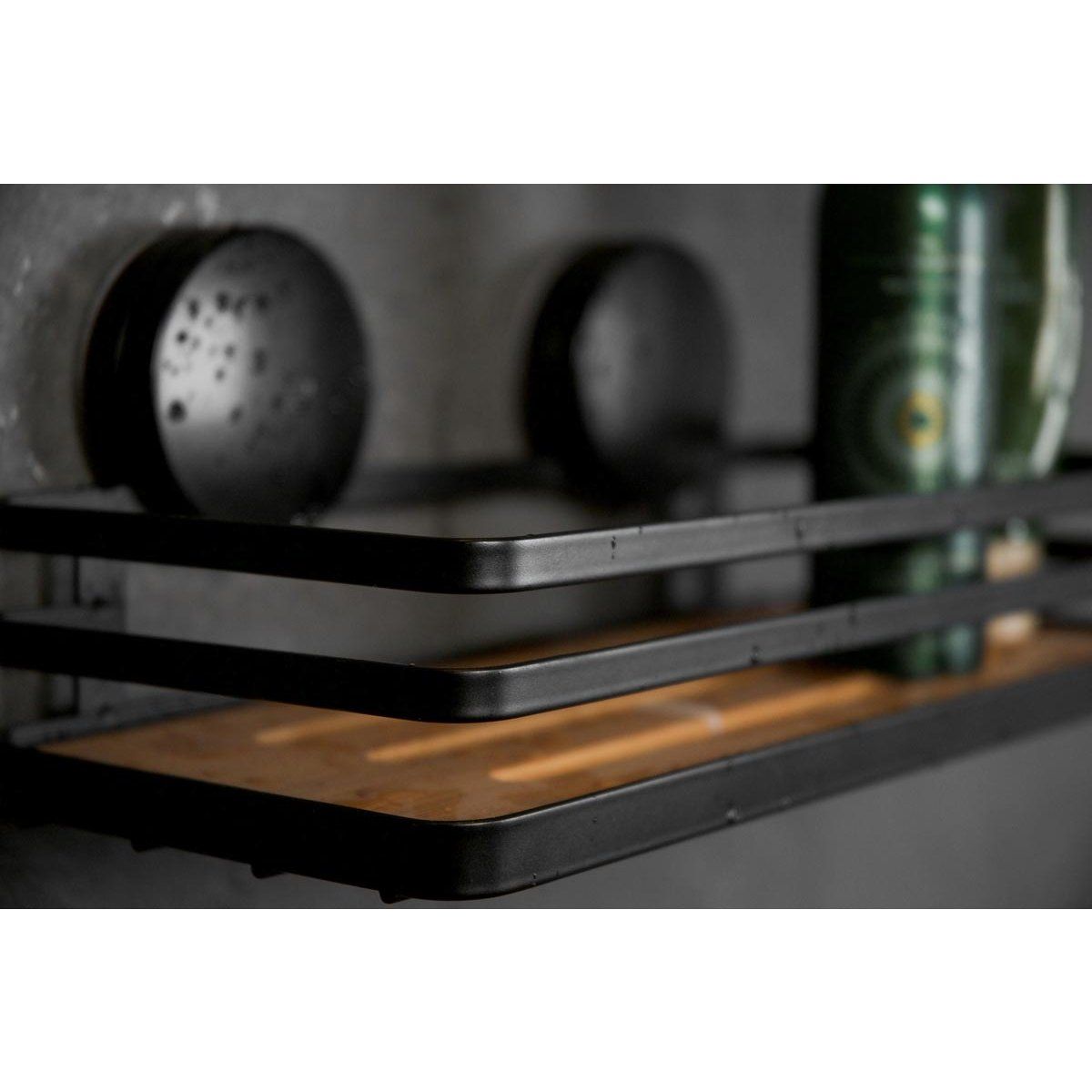 Moderní kombinace černé barvy a dekoru dřeva dodává poličce stylový vzhled, který se hodí do moderních i klasických koupelen. Kovová konstrukce je odolná proti vlhkosti a korozi, takže je ideální do koupelnového prostředí.