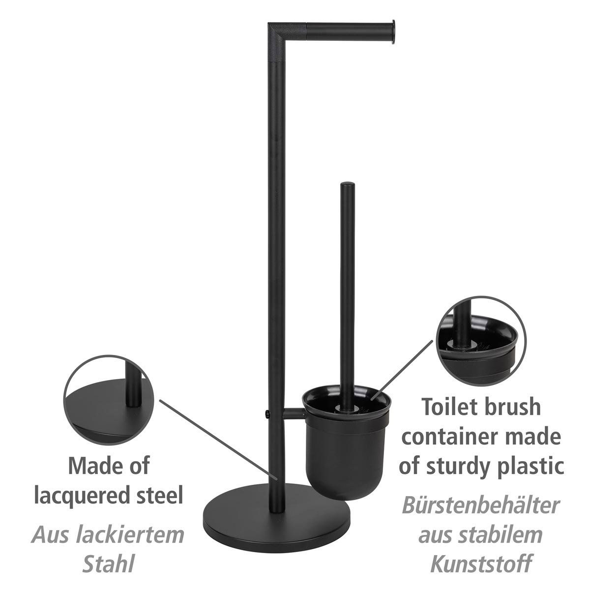 Elegantní stojací WC souprava Parus v černém provedení je praktickým a stylovým doplňkem do koupelny i samostatného WC. Kombinuje držák na toaletní papír a wc štětku v jednom kompaktním řešení, díky čemuž šetří místo a udržuje prostor přehledně uspořádaný. Úzké provedení se snadno vejde i do menších koupelen. Moderní černý design navíc skvěle doplní současný interiér.
