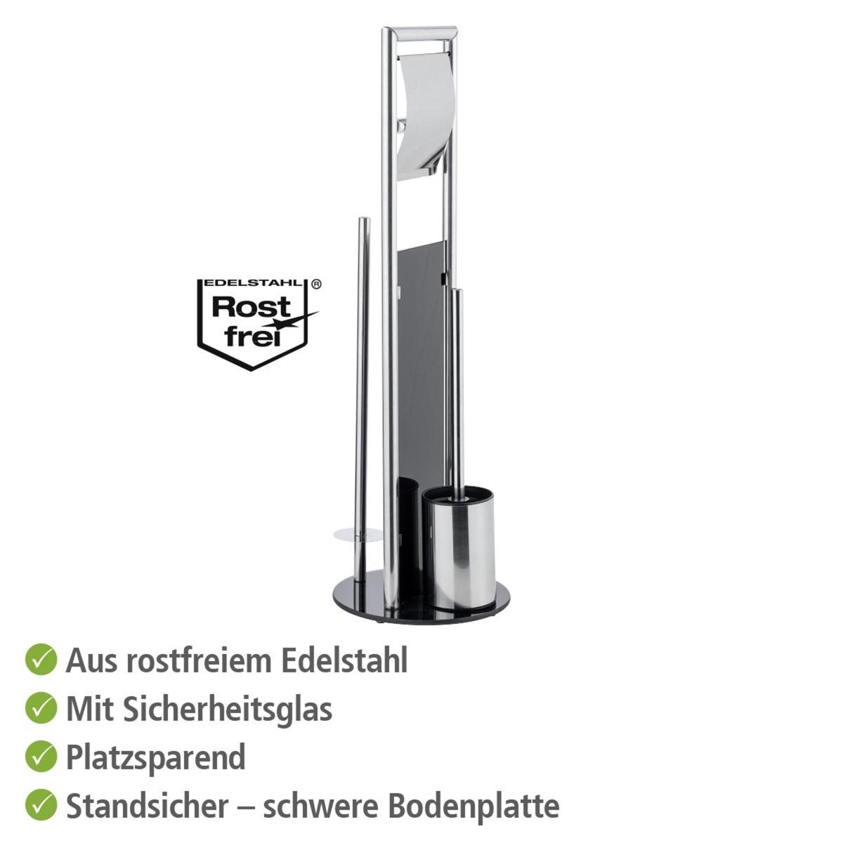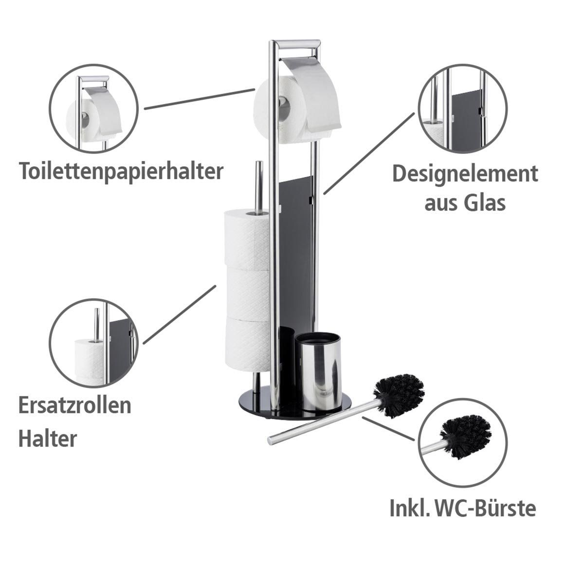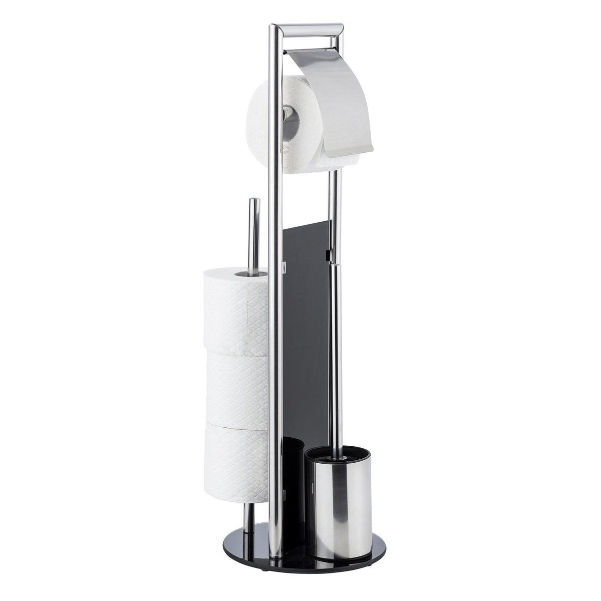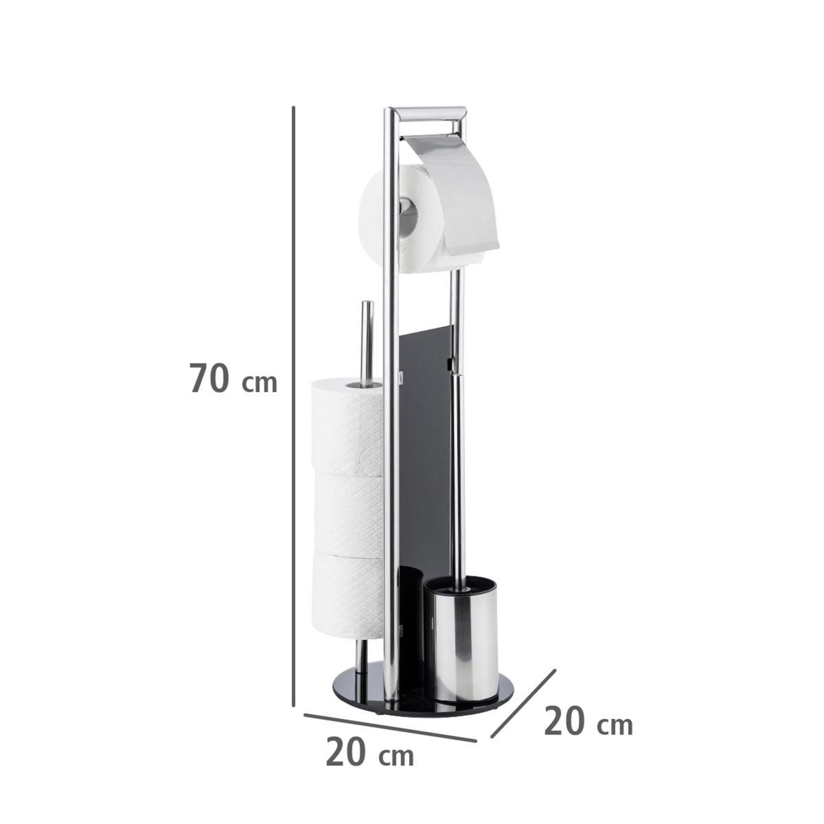 Elegantní wc souprava Ravina je moderní a praktické řešení pro každou koupelnu nebo toaletu. Tato volně stojící wc souprava v sobě kombinuje držák na toaletní papír, zásobník na náhradní role a nádobu s wc štětkou, takže budete mít vše potřebné vždy po ruce.