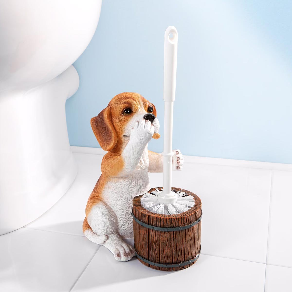 Je načase použít štětku! jakoby říkal pejsek, který jako milá dekorace střeží v malém soudku právě čisticí nástroj pro vaše WC.