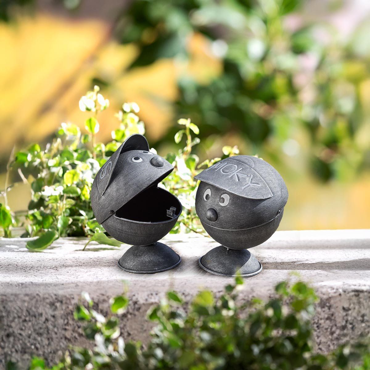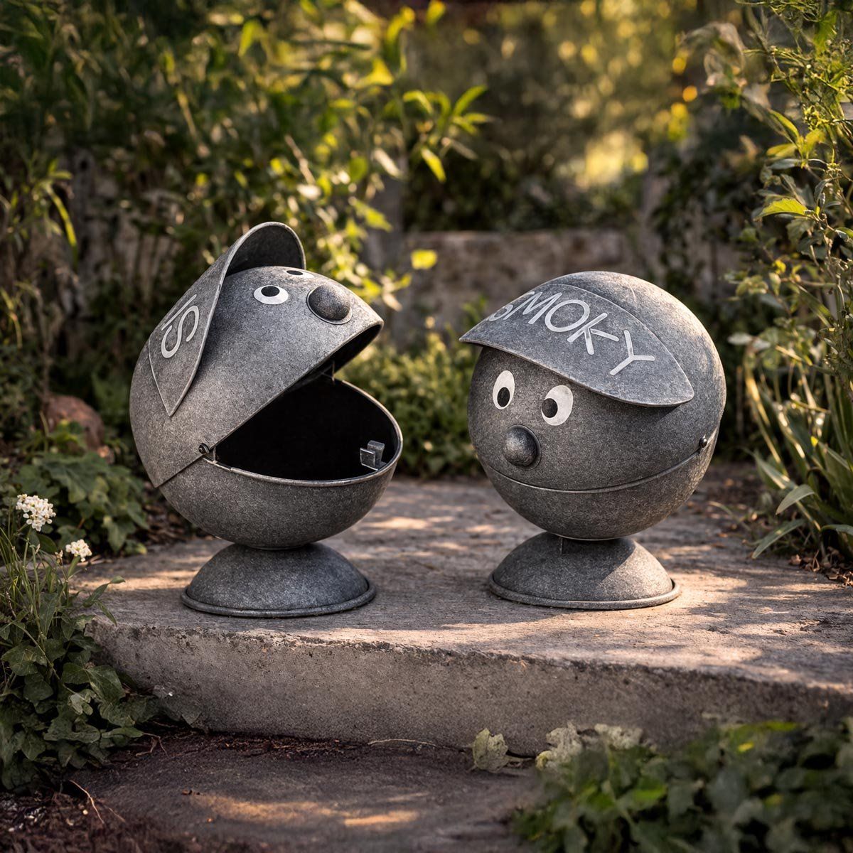 Vtipný kovový popelník s nápisem SMOKY. Vypadá jako kluk s kšiltovkou. Je určen zejména k vnějšímu použití, nenahraditelný během odpočinku na terase či zahradě.