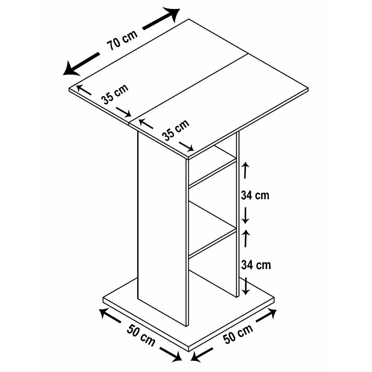 Hlavní vlastnosti stolu: - Vysoký stůl v různých barvách - Tři velké přihrádky (V. 34 x Š. 28 x H. 27 cm) - Extra velká spodní a horní deska (70 x 70 cm) - Stůl na stání cca V. 108 x Š. 70 x H. 70 cm Vysoký stůl „Bofus“ je vrcholem každé firmy, protože tento nábytek dokonale kombinuje funkčnost a design. Nábytek nabízí spoustu úložného prostoru se třemi velkými přihrádkami. Důraz na detail dělá z nábytku VCM něco velmi speciálního.Doplňkové parametry