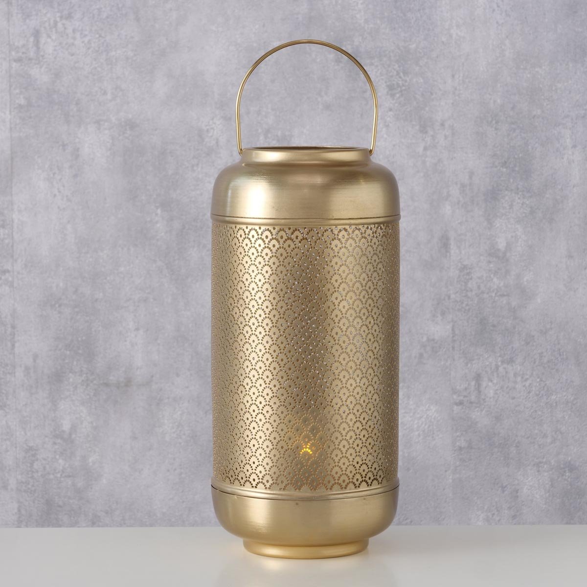 Elegantní kovový svícen v luxusním zlatém provedení vytvoří v interiéru příjemnou a hřejivou atmosféru. Jemně perforovaný povrch propouští světlo svíčky a vytváří dekorativní světelné efekty, které zútulní obývací pokoj, ložnici i terasu.