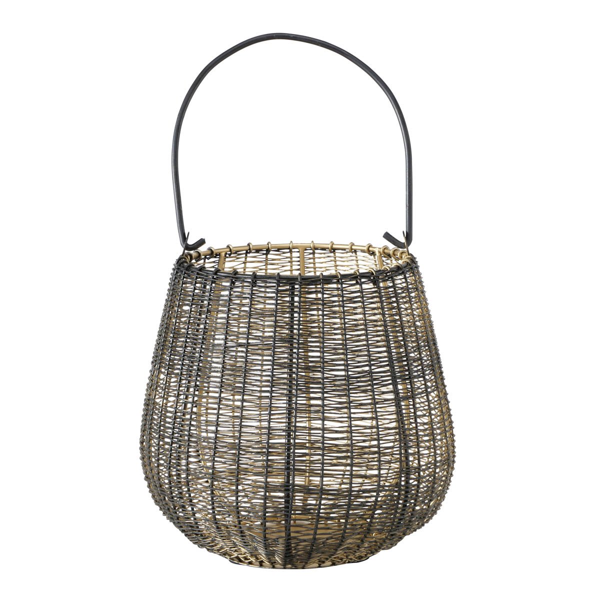 Lucerna v podobě drátěného koše s uchem v barvě starožitného zlata je ceněnou ruční řemeslnou prací.