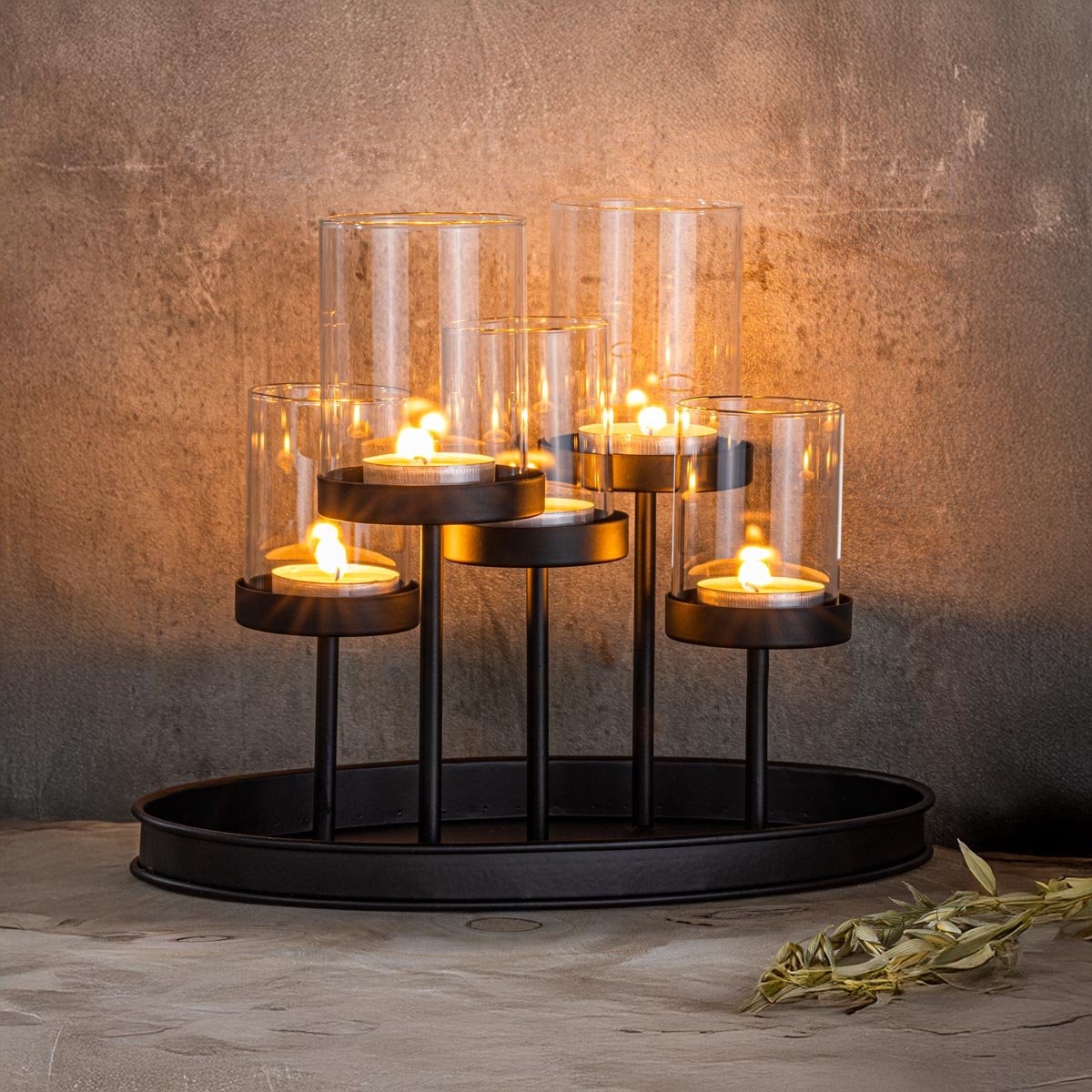 Kovový svícen na 5 čajových svíček