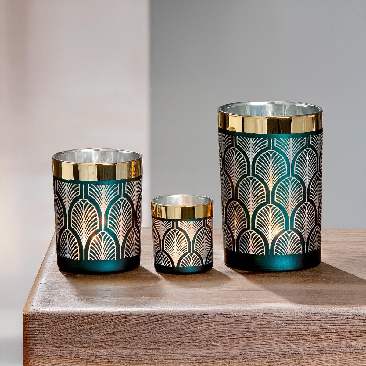 Elegantní skleněný svícen v luxusním zeleno-zlatém provedení vnese do interiéru teplou atmosféru a nádech glamour stylu. Dekorativní vzor s metalickým efektem vytváří při zapálení svíčky krásnou hru světla a stínů. Tento stylový svícen na čajovou svíčku je ideální pro večerní relaxaci, slavnostní prostírání i celoroční dekoraci.