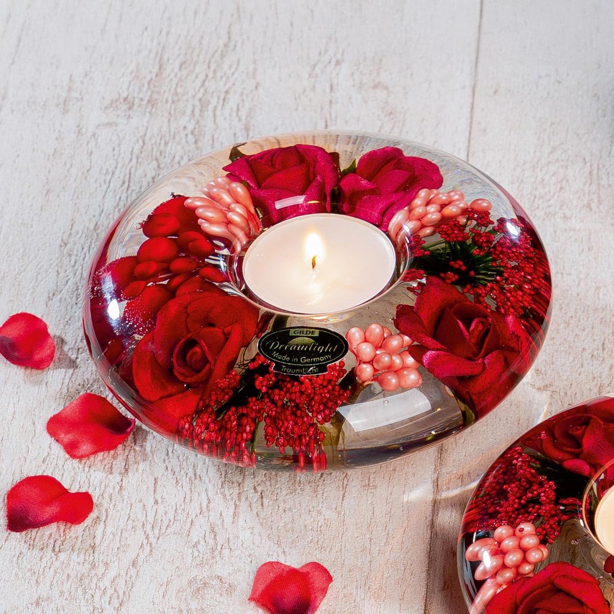 Svícen na čajovou svíčku je vyrobený ručně technikou zalévání květin do skla, která vznikla v Německu. Každý kus je originál.