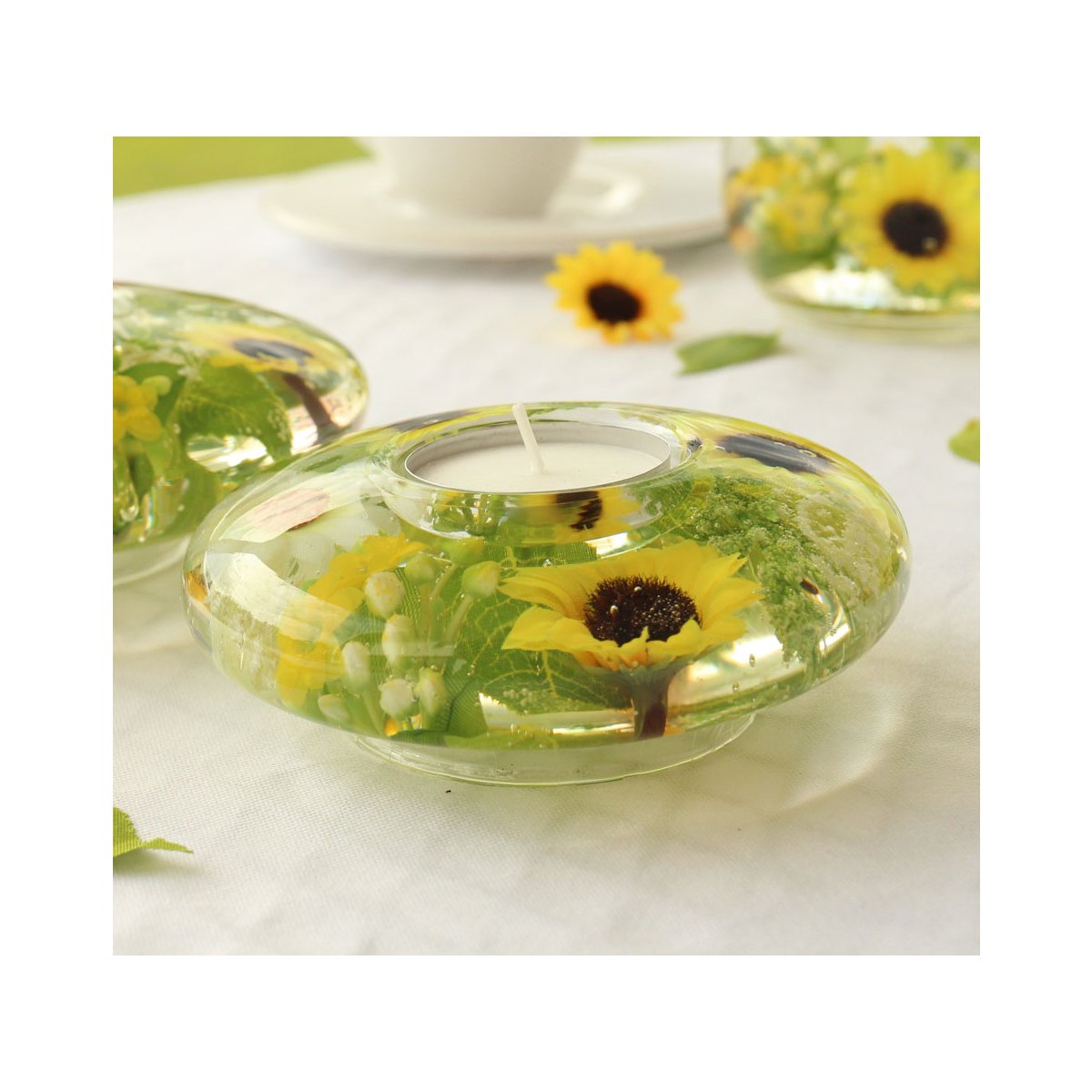 Nádherná a originální dekorace vytvořená zalitím květů do skla… to jsou svícny Ufo. V tomto případě jsou to květy slunečnic v zajímavém tvaru.Další použité materiály: Umělá hmota.