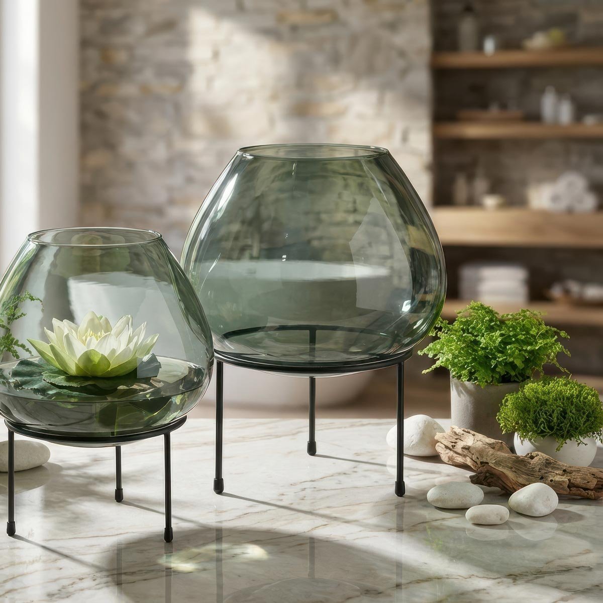 Tento skleněný svícen se snadno kombinuje s ostatními bytovými doplňky a hodí se do moderních, industriálních i klasických interiérů. Pokud hledáte elegantní dekoraci, která dodá prostoru teplo a styl, je tento model ideální volbou.