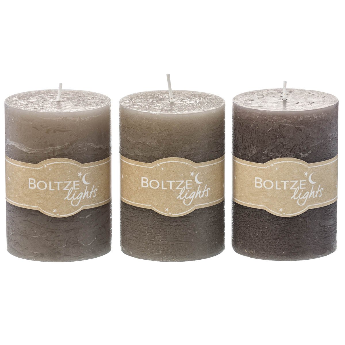 Svíčka Rustic šedohnědá mix 10 cm, 3 ks