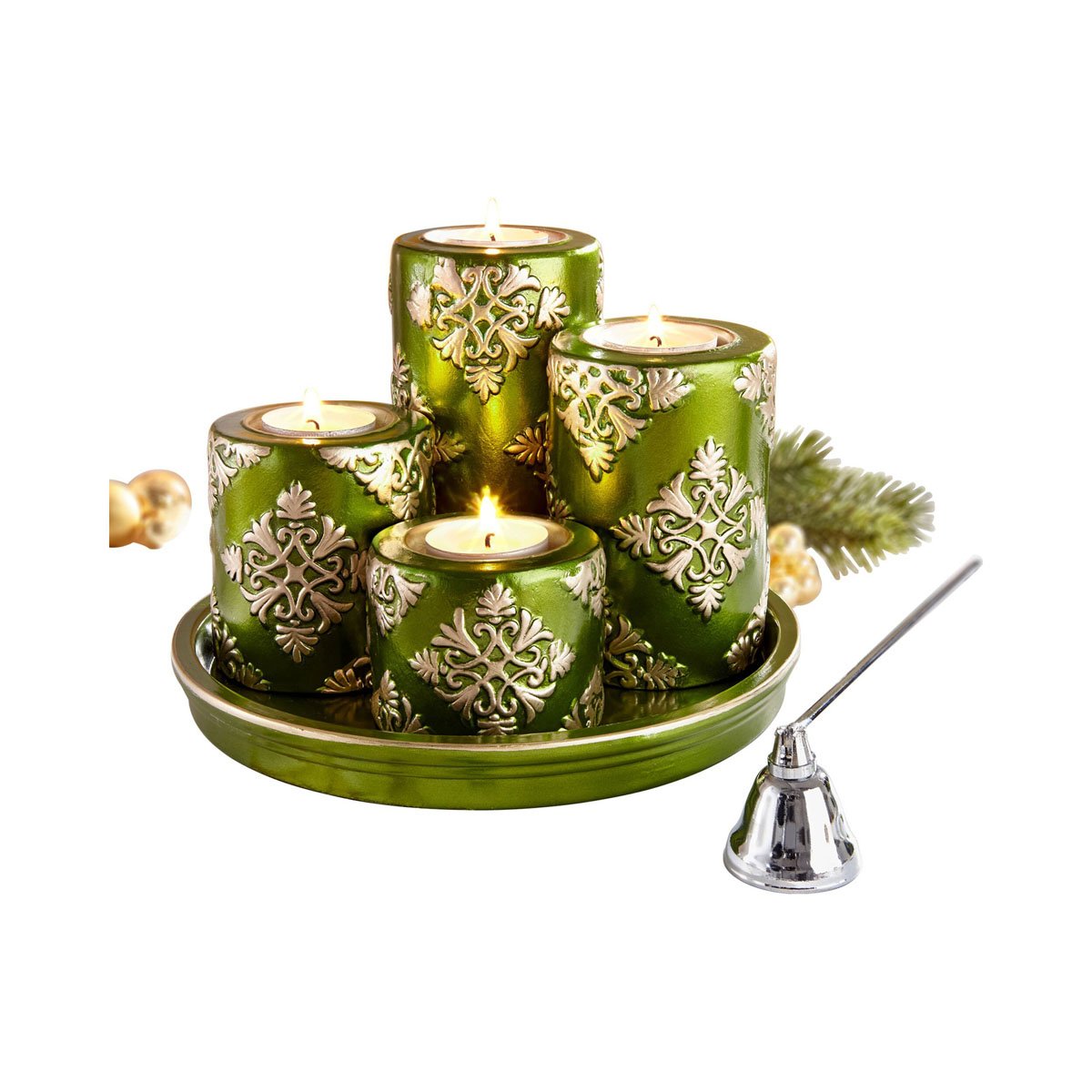 Vánoční atmosféru na slavnostně prostřený stůl dodá keramický talíř se 4 svícny zdobenými zlatými ornamenty. Ubrus bude chráněn před voskovými skvrnami.
