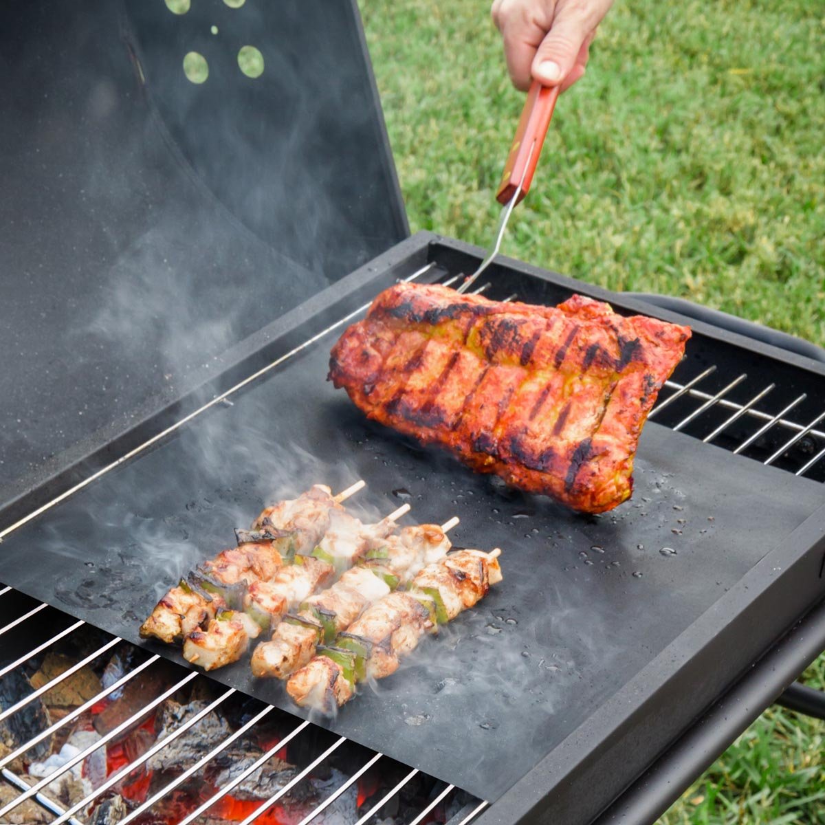 Tato grilovací podložka má opravdu praktické použití. Využijete ji na plechy do trouby jako opakovaně použitelný papír na pečení nebo na gril jako rošt, který usnadňuje přípravu některých pokrmů (tenké plátky zeleniny, mořské plody, vejce, slanina atd.). Navíc se díky němu gril nezašpiní a nedochází k mísení chutí.