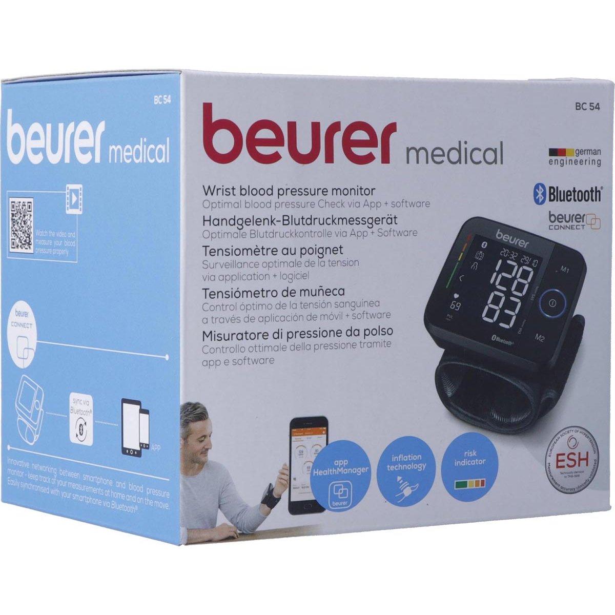 Balení obsahuje: tlakoměr na zápěstí, pouzdro, 2 x AAA baterie. Vyrobila německá společnost Beurer. Prodloužená záruka 5 let.