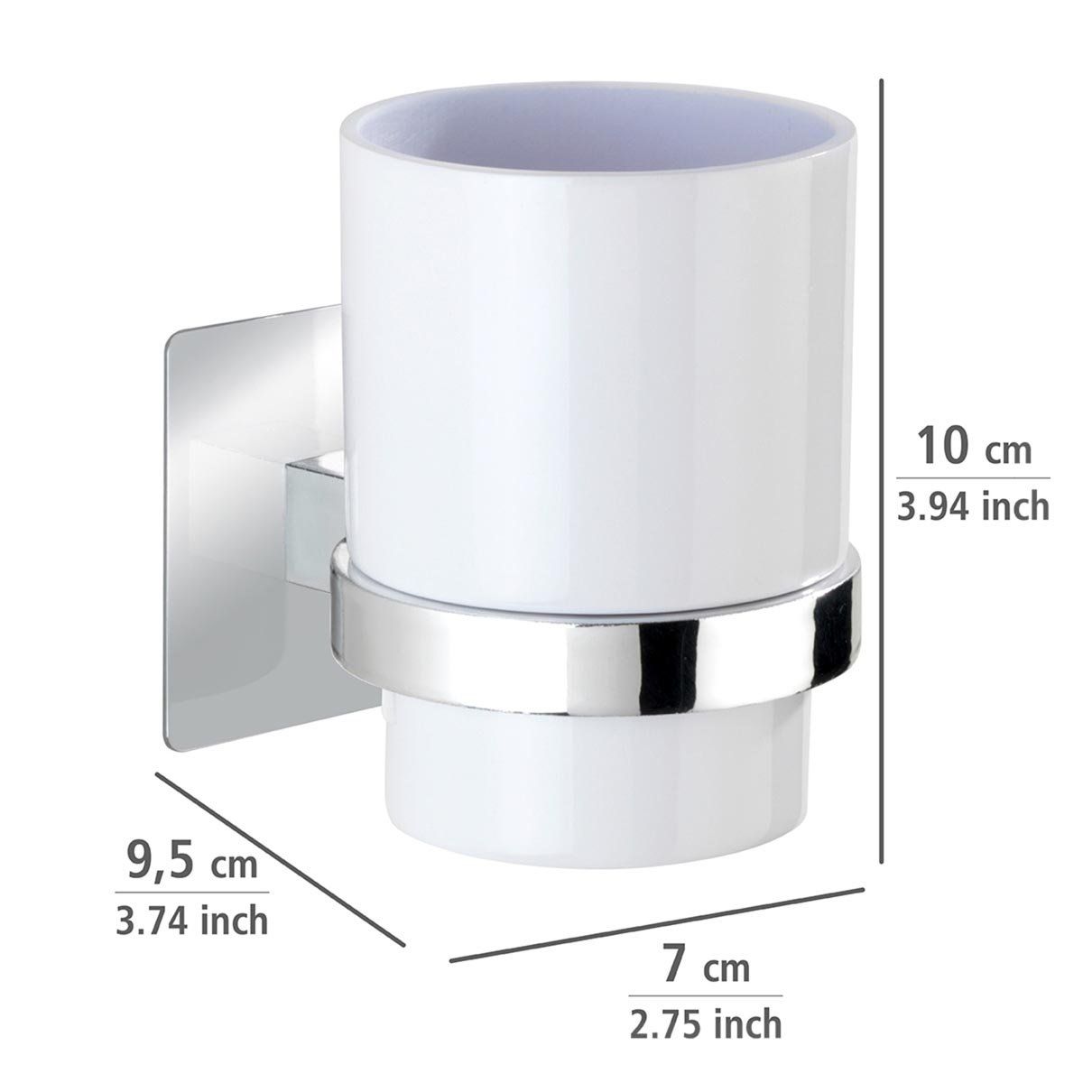 Stylový hrnek na zubní kartáčky QUADRO s držákem Turbo-Loc je praktickým a elegantním doplňkem do každé koupelny. Tento nástěnný držák na kartáčky pomáhá udržet kartáčky hygienicky uložené ve svislé poloze a zároveň šetří místo na umyvadle.