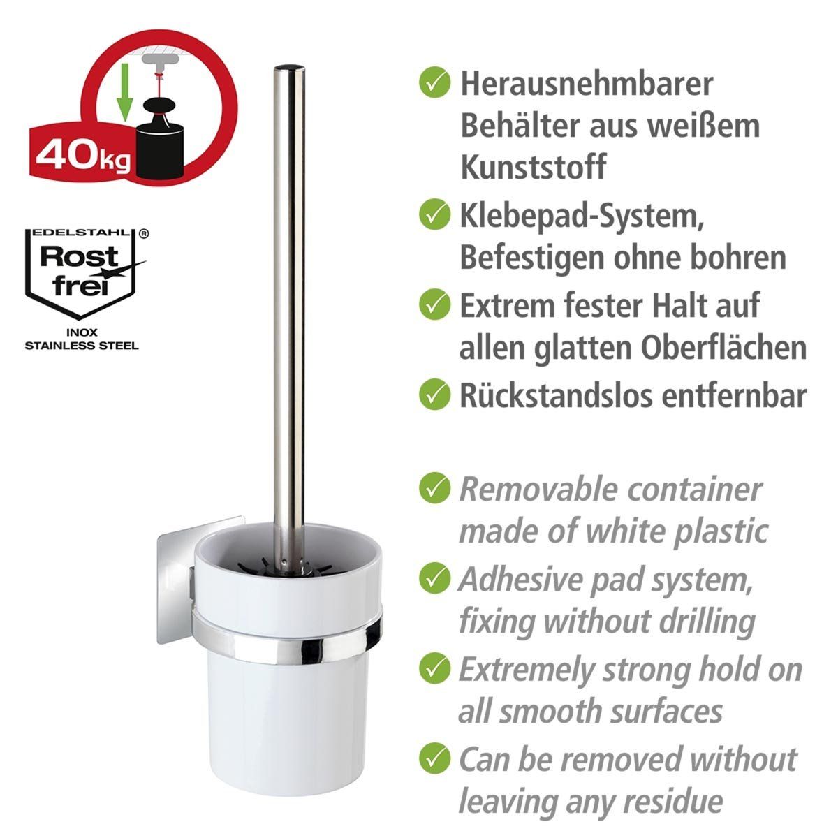 Tato toaletní štětka QUADRO je ideální volbou pro každého, kdo hledá funkční a stylové koupelnové doplňky s dlouhou životností.