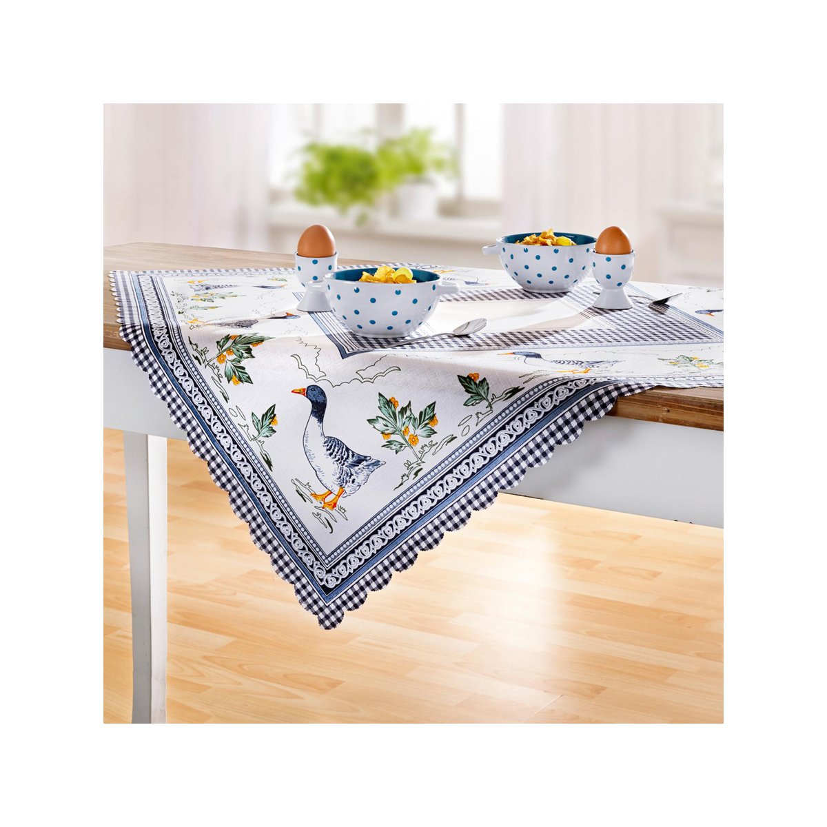 Překrásný ubrus s textilním potiskem s veselým motivem hus. Vynikne na každém stole. Lze prát na 40 °C.