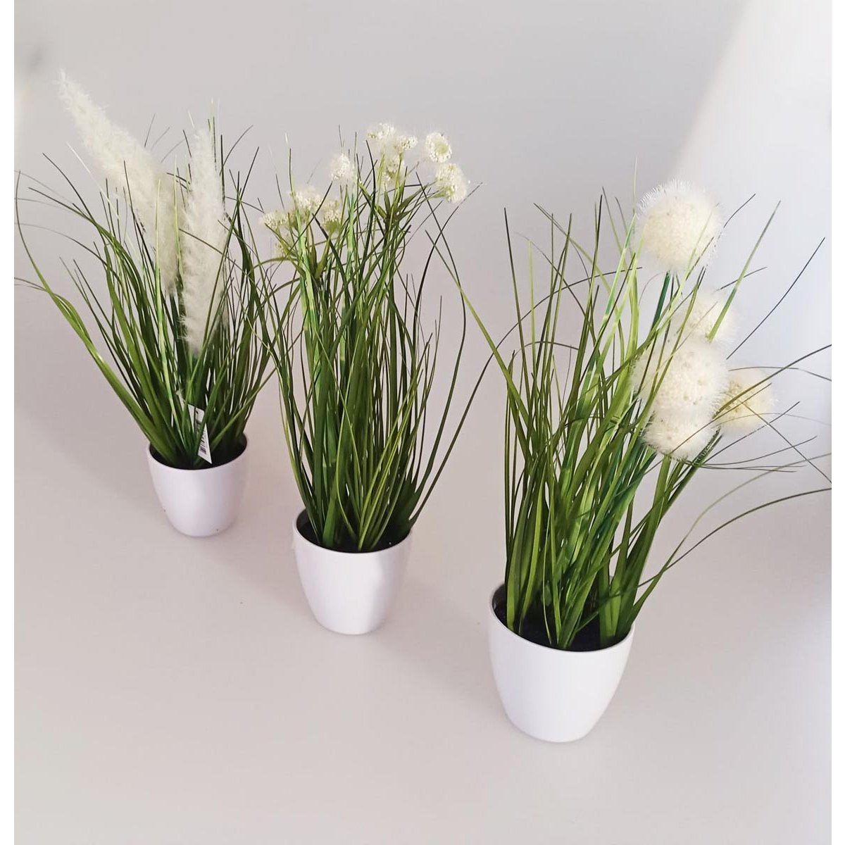 Stylová sada 3 kusů představuje elegantní dekorativní trávu, která vnese do interiéru svěží a přirozený vzhled bez nutnosti péče. Tyto umělé rostliny působí díky jemným detailům velmi realisticky a skvěle doplní moderní i přírodní styl bydlení.