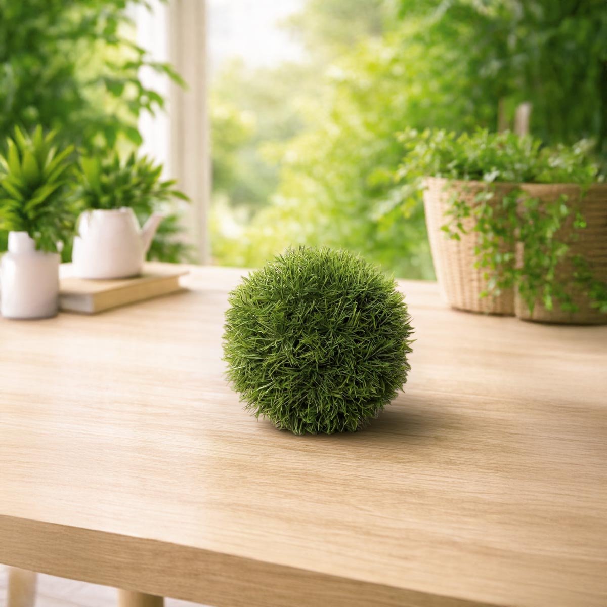Umělá travní koule je ideální jako celoroční dekorace, která oživí obývací pokoj, pracovnu, vstupní prostor nebo zimní zahradu – bez zalévání a údržby.