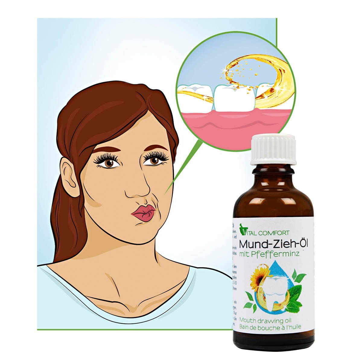 Ájurvédské zvyklosti pro zdraví ústní dutiny: Denně 5 - 10 minut používání oleje pro zdravou ústní flóru.
