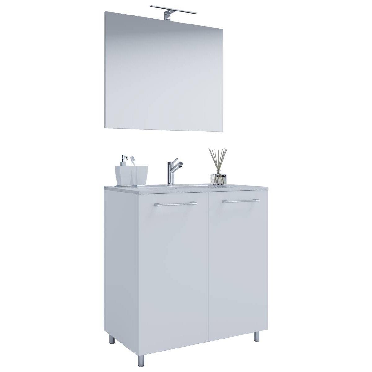 3dílná umyvadlová skříňka Badinos 2 dveře 60 cm se zrcadlem, bílá