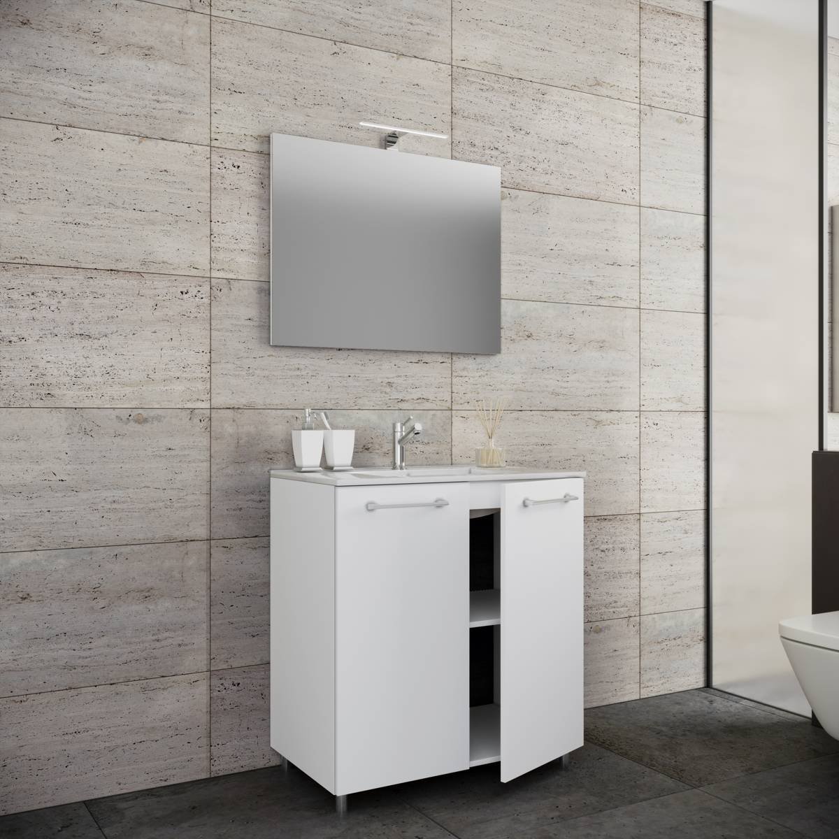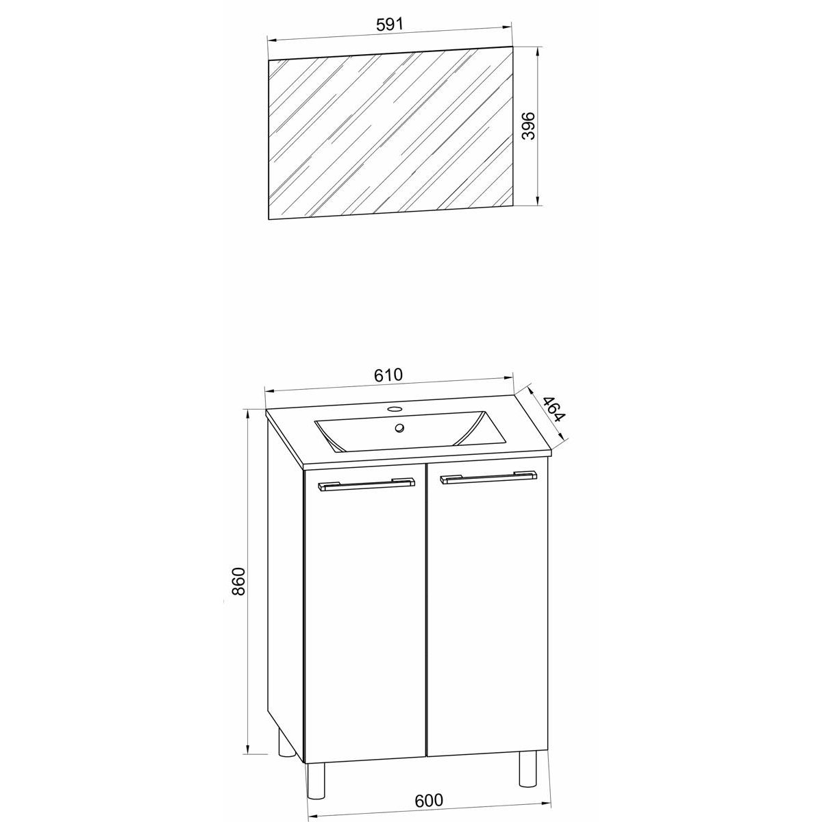 Hlavní vlastnosti: Sada obsahuje: - 1x Spodní skříňka se 2 otočnými dvířky - 1x Keramické umyvadlo - 1x Zrcadlo z tvrdého skla Tato sada je specialitou pro vaši ložnici. Spodní skříňka se dvěma otočnými dvířky nabízí dostatek úložného prostoru pro sanitární potřeby a další náčiní. Spodní skříňka pod umyvadlo: - Rozměry cca V 50 x Š 60 x H 46 cm - Korpus vyrobený z odolného melaminu - Dvoje velké otočné dveře s kovovými panty - Madlo s hliníkovým vzhledem - Snadné a bezpečné upevnění na zeď - Podstavec je součástí balení Umyvadlo: - Rozměry cca V 17 x Š 60 x H 46 cm - Odolná keramika Zrcadlo: - Rozměry cca V 40 x Š 60 x H 3 cm - Zrcadlo z tvrdého skla - Snadné a bezpečné upevnění na zeď Mycí stanici lze kombinovat s dalším nábytkem ze série „VCM Sentas“.Doplňkové parametry