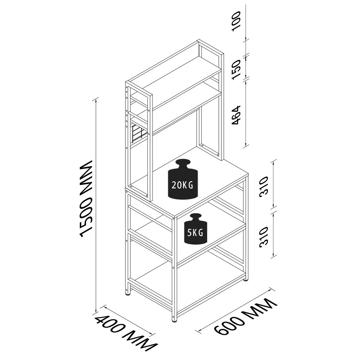 S kuchyňskou policí „Kolari“ designér vytvořil kus nábytku, který může být poutačem v každé místnosti. Praktický, přímočarý a přesto elegantní. Industriální vzhled černého ocelového rámu je doplněn rustikálním dřevem a vytváří tak harmonickou směs stylů. Skvělá police se čtyřmi otevřenými přihrádkami, velkým úložným prostorem a roštem, který poskytuje dostatek úložného prostoru s dalšími háčky (nejsou součástí dodávky). Kuchyňskou skříňku lze kombinovat s dalšími policemi ze série „VCM Kolari“.