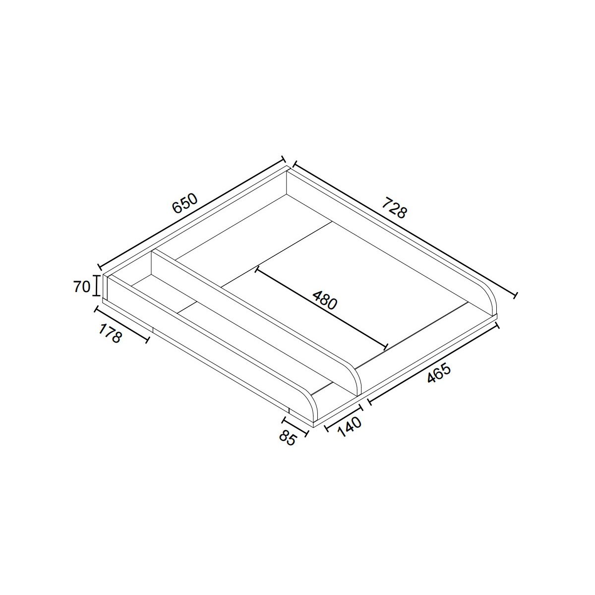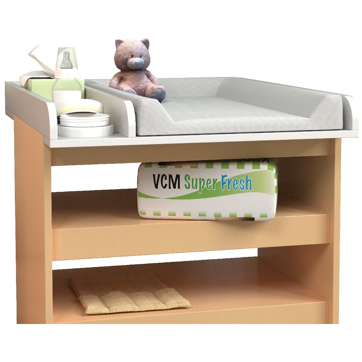 Hlavní vlastnosti: - Univerzální přebalovací deska pro komody - Součástí dodávky jsou nástěnné držáky - Boční kovové desky zabraňují sklouznutí přebalovací podložky - Velká boční přihrádka pro uložení přebalovacích potřeb - Rozměry přebalovacího stolu: cca v 7 x š 65 x h 73 cm - Rozměry přebalovací plochy cca 47 x h 71 cm Univerzální přebalovací stolek byl speciálně navržen pro komody. U tohoto produktu je bezpečnost dítěte na prvním místě. Vybaven dalšími nástěnnými držáky nabízí maximální stabilitu a bezpečnost během přebalování. Měkké hrany a robustní konstrukce zajišťují, že dítě je během přebalování vždy chráněno a v pohodlí. Na každém bočním panelu je připevněna malá kovová destička, kterou lze připevnit ke komodě pomocí dodaných šroubů, takže upevnění vždy zůstane na místě a nepohybuje se. Přebalovací stolek lze kombinovat s dalším nábytkem z řady „VCM Malira“. Od 70. let 20. století se VCM specializuje na návrh, výrobu a distribuci nábytku s férovým poměrem cena/výkon a již zkrášlil miliony domácností.Doplňkové parametry