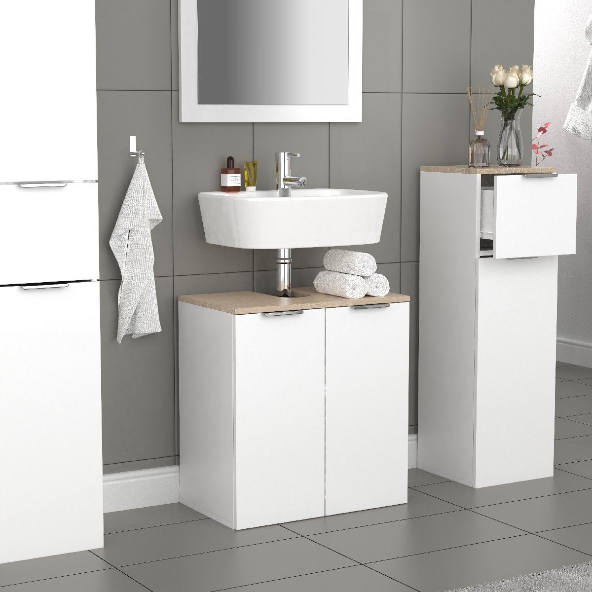 Hlavní vlastnosti: - Rozměry cca v. 60 x š. 56 x h. 34 cm - Robustní a kvalitní zpracování - Dvoje plynule se pohybující panty Skříňka pod umyvadlo VCM „Donali“ se perfektně hodí do každé koupelny, a proto designér záměrně zvolil nadčasové panty. Povrch s melaminovým povlakem usnadňuje čištění skříňky a odolává vlhkosti. Skříňku pod umyvadlo lze doplnit dalším koupelnovým nábytkem ze série „Donali“. Od 70. let 20. století se VCM specializuje na návrh, výrobu a distribuci nábytku s férovým poměrem cena/výkon a již zkrášlila miliony domácností.Doplňkové parametry