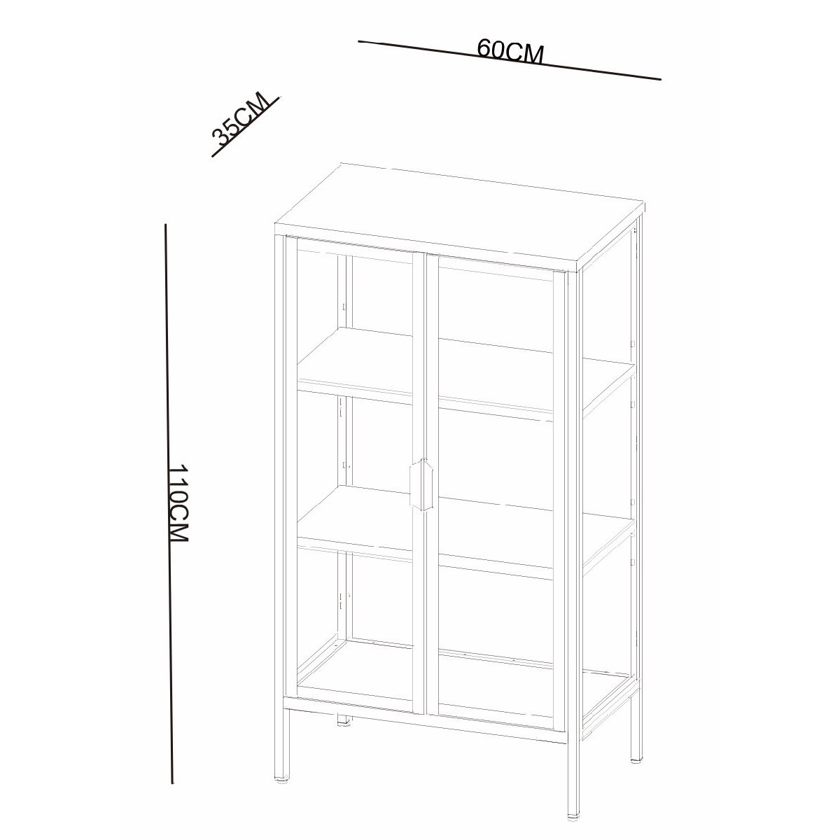 Rozměry vitríny jsou V 110 x Š 60 x H 35 cm, což ji činí ideální volbou pro různé interiéry.